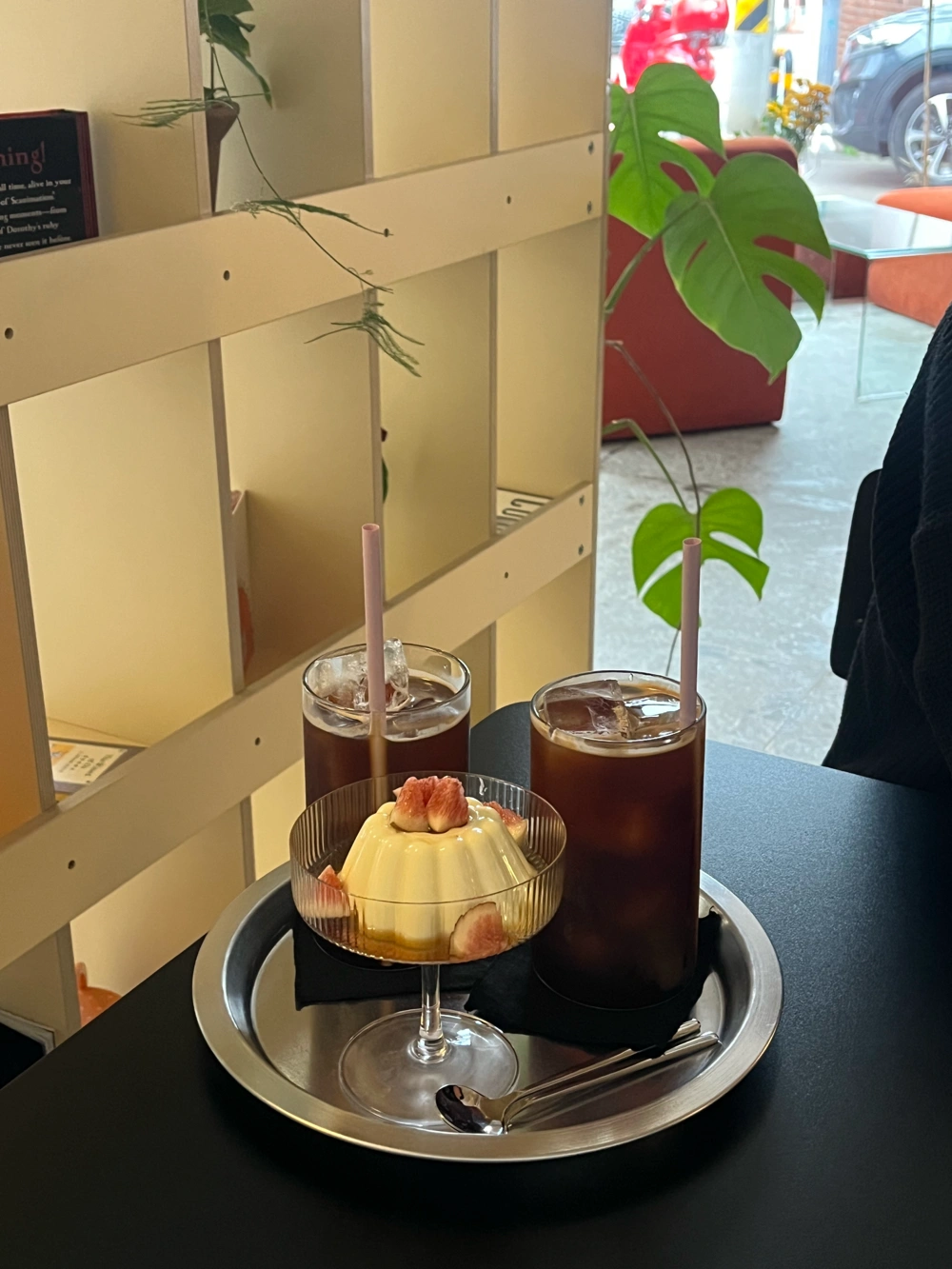 푸릇푸릇한 식물이 곳곳에 있어 맘에 든다 🌱 커피는 산미가 좀 있는 편이어 아쉬웠지만 푸딩이 아주 맛있었다… 🍮💛🤎 창가 자리에 앉았는데 다음에 또 방문해서 다른 자리에도 앉아보고 싶다 ~~ ❗️귀여운 강아지도 상주해있음