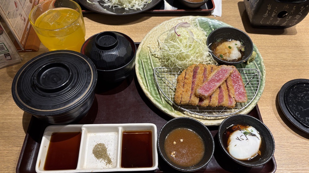 Combo came with salad, rice and miso soup. Included many dipping sauces (radish, curry, poached egg in sauce, salt and pepper, etc.) My friends went twice during their trip, so I was surprised at how okay it was. It definitely tasted delicious, but we had to share an plate-sized grill across the whole table and the meat didn’t really end up getting too warm… The location (inside Yodobashi camera) was also pretty warm… like if I were cooled off I’d be much more ravenous, probably.
