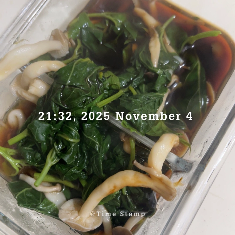 跟昨天一樣 冰雞胸肉+冰地瓜 在等水滾的時候把這兩個吃完 再將川燙好的地瓜葉放進容器 這要可以少洗一個碗😁 不過因為水沒有瀝的太乾淨 蠔油都融在水裡沒有昨天的鹹 還行啦