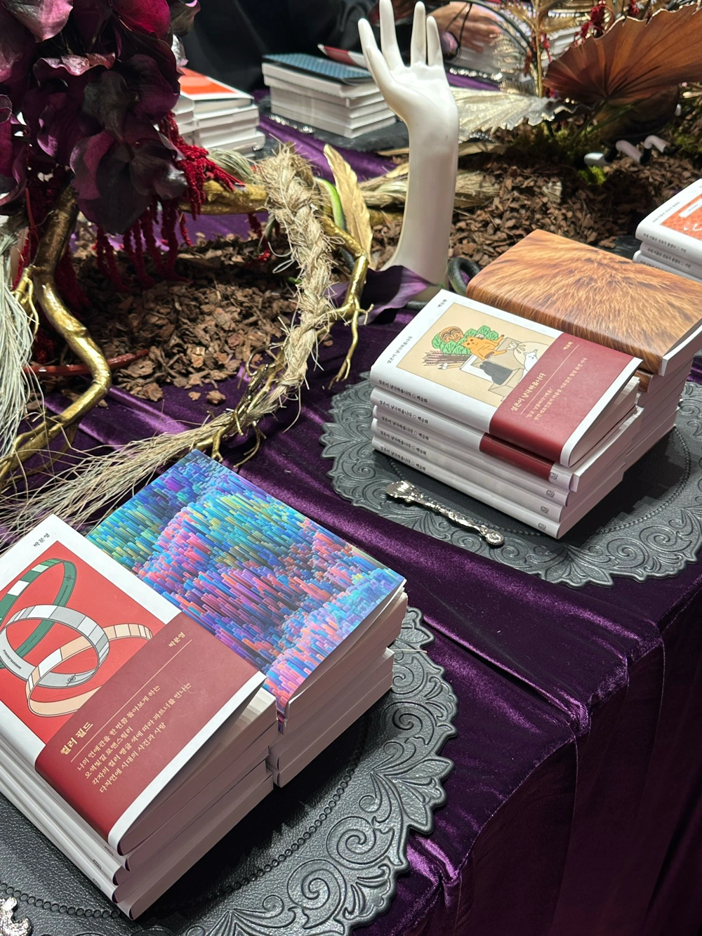 책을 여러권 사면 모든 직원 분들이 정열적으로 박수를 쳐주신다. ㅎ돈 쓰는 거 너무 재밌었다. 안전가옥 쇼트시리즈 다섯권인가 질러 버렸다. 칵.러.좀은 집에 있어서 표지 새거 받았다. 리버시블 표지 너무 이쁜거 아닌가요…운영자님 상 받아라. 직원분들 너무 친절하고 작가님들 한 시간마다 오셔서 사인 받으려고 한권씩 더 샀다는…ㅎ