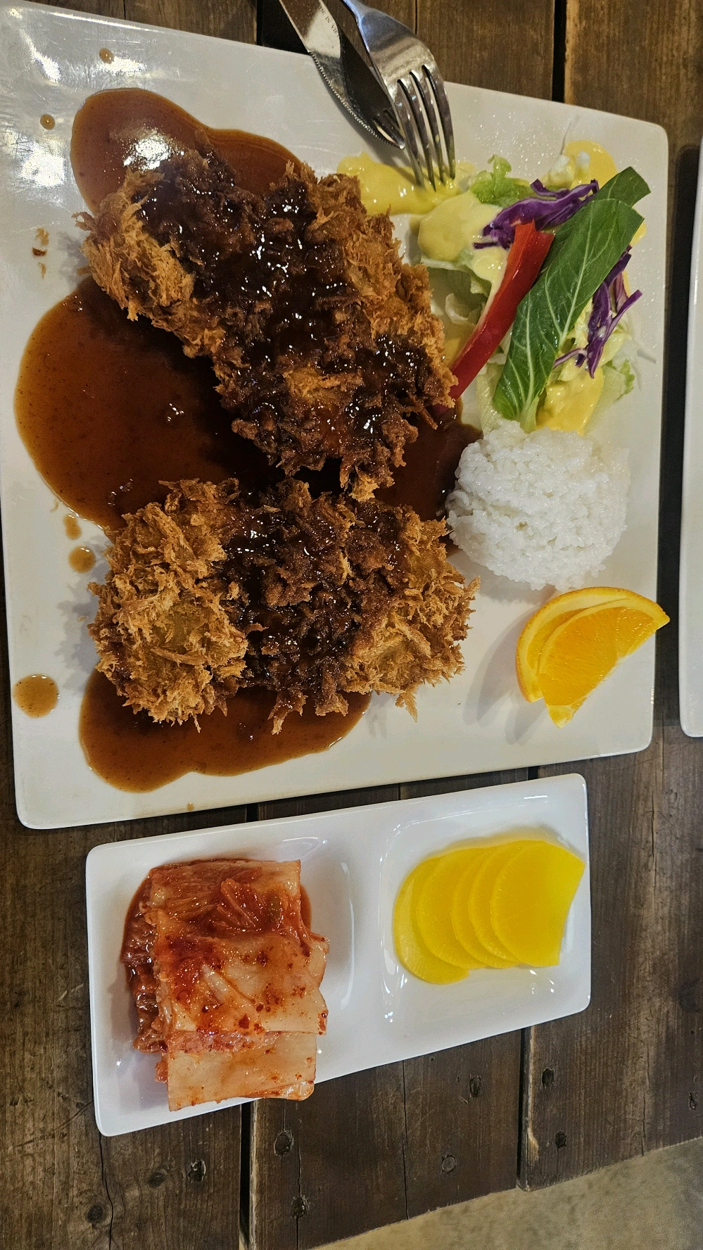 부산에서 서울까지는 너무 멀고 길도 막혀서 중간에 쉴겸 교통체증을 피하려고 찾은 궤짝카페~~ 이번이 3번째인지 4번째인지 모르겠으나 3년전에 방문한 우리를 기억해준다. 사장님이 직접 만든 카페공간이 멋들어진다. 아들과 딸은 홈스쿨링으로 교육하고 생각한데로 꾸며가는 인생이야기가 참으로 멋지다. 3년전에 방문했을때 가족과 이런저런 얘기 나눴는데 이번에도 반겨주시고 함께 그 동안을 얘기를 나누니 따뜻한 지인을 만난듯한 행복한 시간이였다. 돈까스와 커피 셋트가 15000원이여서 먹고 쉬고 가기 딱 좋은 공간이다. 톨게이트에서 멀지 않아 좋다. 감곡IC 근처에 위치해있다.