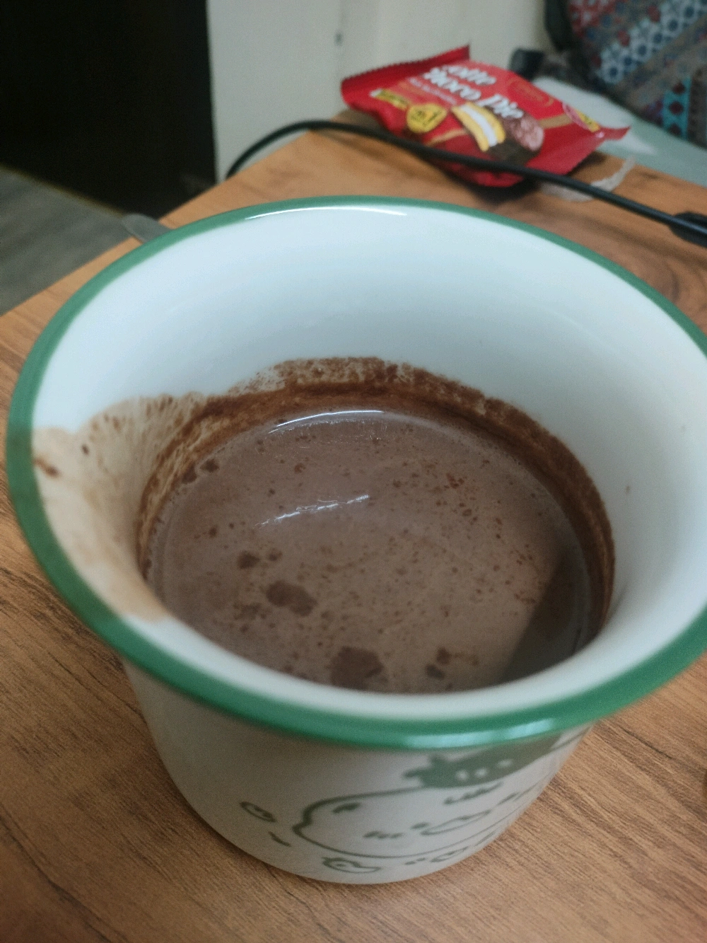 hot chocolate in a cute cup and lotte choco pie??? sign me up <3 i used a shit ton of hot chocolate powder, one sachet of instant coffee, and definitely more than a dash of vanilla in it! and it tastes GOOOOOOD! its exams season and i have zero motivation, last night i slept for 11 hours which is like almost double of how much i usually sleep and its crazy, and ive been binge watching since i woke up, had manchurian and noodles for brunch and regardless of how sleazy it makes me feel, atleast i am not panicked or super stressed a little bit of eustress would definitely be good for me tho🤸♀️ anyways, here is my hot choco and the cutesssst cup!!!!!