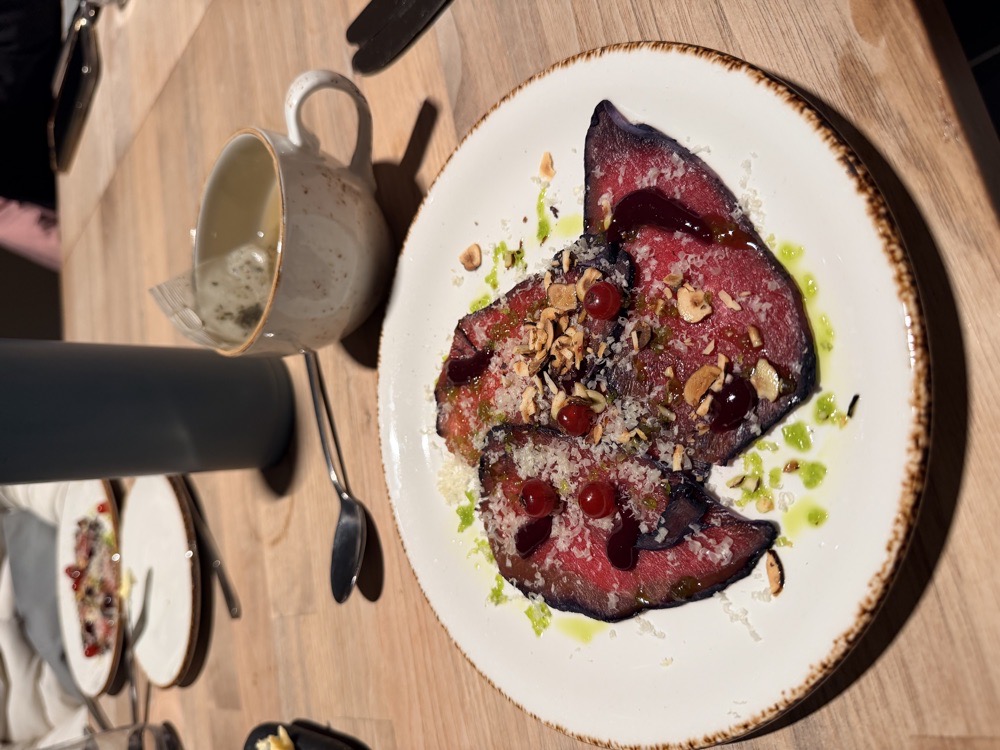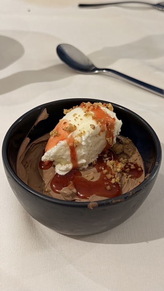 冰島的食物都好好吃 早餐是飯店自助吧(👍🏻 那裡的中餐和晚餐都是三道菜 第一道:前菜或湯品或生羊肉切片! 第二道:主餐(羊肉或牛肉或深海白鮭魚或雞肉),這幾餐主食的肉完全不柴,嫩到不行😋 第三道:一定是冰淇淋,有些餐廳再加慕斯或蘋果派,就算這麼冷還是要吃冰,這就是冰島人!