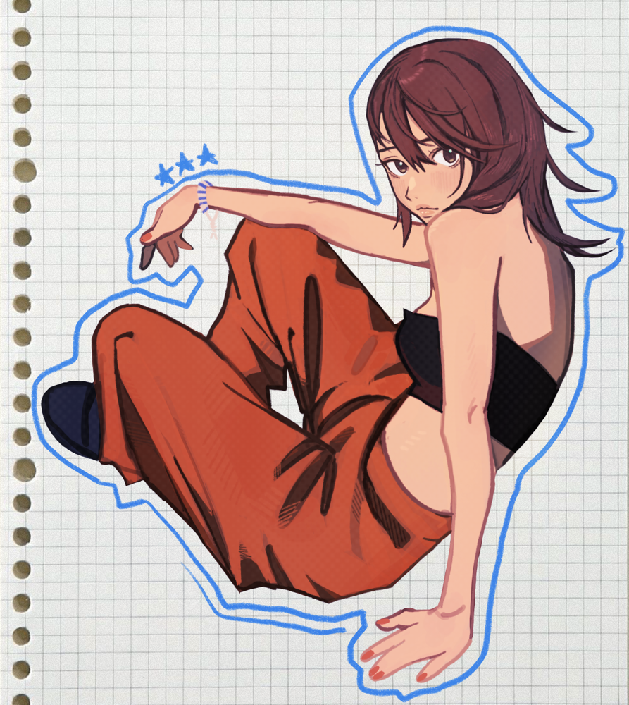 resharing a drawing from 2023 when I was convinced I couldn’t draw used a reference for the pose but tried to make the shapes fun :3