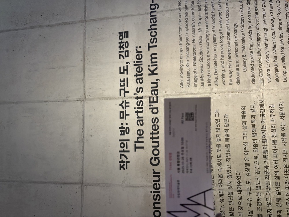 같이 간 친구들이 김창열 작가에 대해 잘 알고 있어서 동냥해 들으면서 나도 많이 배웠다 물방울이 타지에서의 외로움과 우울함에서 나왔다는 게 인상 깊었음 예술의 세계란... 보는 내내 한 사람을 떠올리면 어떤 상징물이 떠오른다는 게 너무나 대단한 삶이라고 감탄함