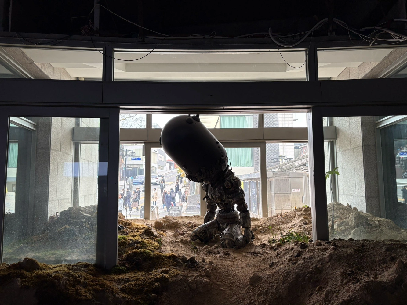 아트선재센터의 설치미술 대학 때 인류세에 대한 수업을 들었었는데 주제가 딱 그거여서 이해가 잘 됐음 근데 작품 설명이 따로 없어서 도슨트 필수일 듯!!ㅠㅠ 도슨트 하시는 분이랑 같이 질문하고 대답하면서 볼 수 있어서 좋기도 했고 인간이 존재하지 않는 공간이라는 위화감과 공포감에 더욱 몰입되던 전시였늠... 불이랑 세탁기만 유일하게 움직이는 존재였는데 그게 무서웠어 그리고 나는 적군의 언어가 이 공간을 이렇게 만든 인간의 언어를 의미하는 줄 알았는데 알고 보니 작가가 아르헨티나 사람이라 작가의 나라를 식민 지배하고 그 언어를 뺏은 스페인을 적군이라 상정한 거라네요 대표작인 한 로봇이 한쪽 손에 다비드상을 들고 있는데 이건 인간의 문화적 산출물이 장난감 취급을 받을 만큼 작고 볼품 없는 취급을 받는 세상이 되었다는 것 이것이 인류세 납부하는 미래라는 생각에 섬뜩했음!!ㅠㅠ... 다들 시간이 된다면 꼭 들려봐 냄새 조명 소리까지 구현한 전시라 오감만족임!!!!