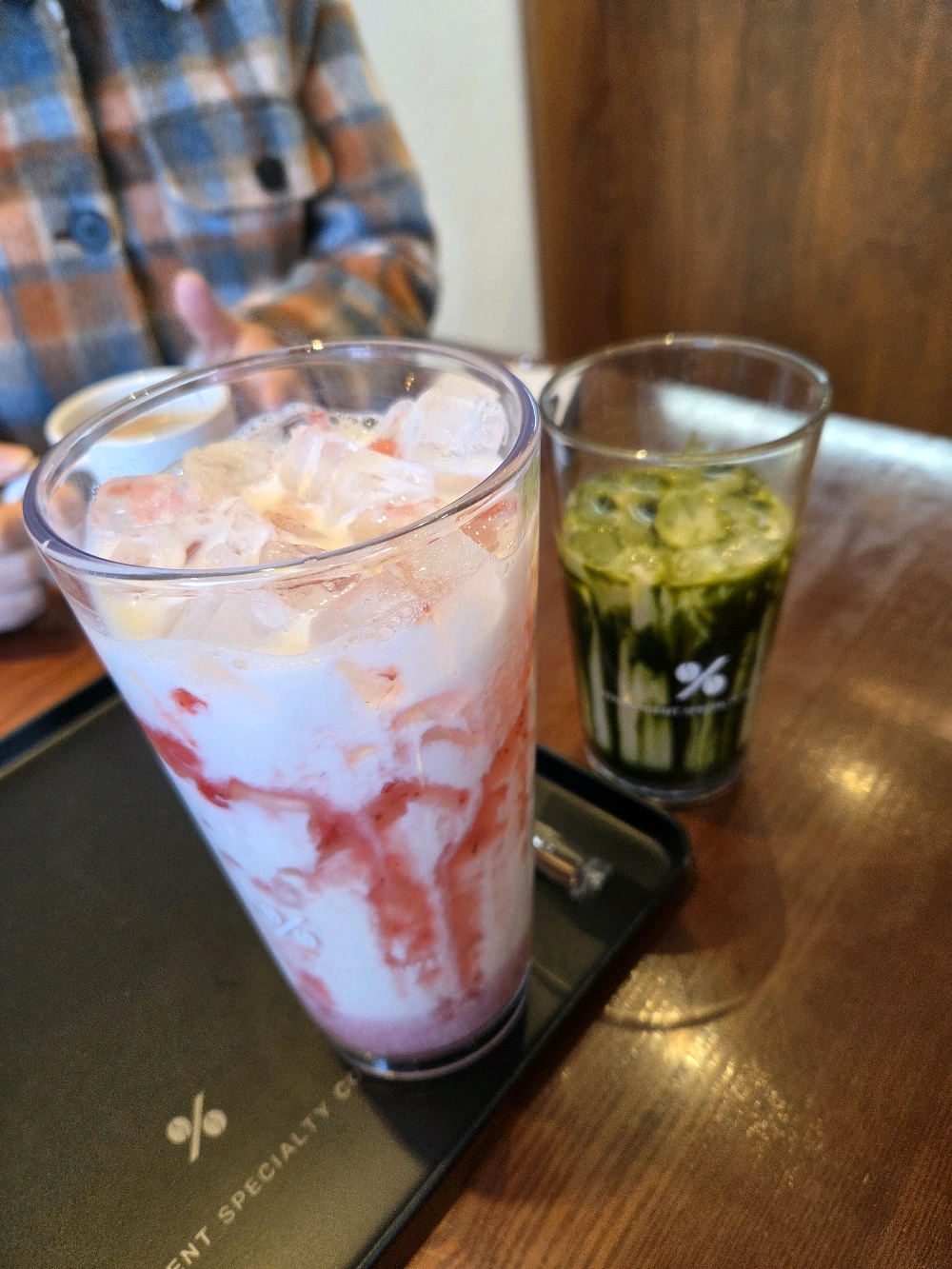외할머니 모시고 갔는데 가게가 좀 협소해서 2인 정도가는게 더 적당했을것 같음 물론 4명용 자리도 있긴하지만.. 뭔가 길게 있긴 좀. 대신 음료를.. 물론 내가 라지를 시킨다고 시키긴 했는데 ㄹㅇ 초울트라엑스트라라지st로 와서 당황했음; 맛은.. 그냥 맛없는건아닌데 좀 되게 전반적으로 단 느낌. 딸기 라띠도 딸기맛은 모르겠고 달구나< 싶었고 혈육이 시킨 말차라떼도 달았다카드라
