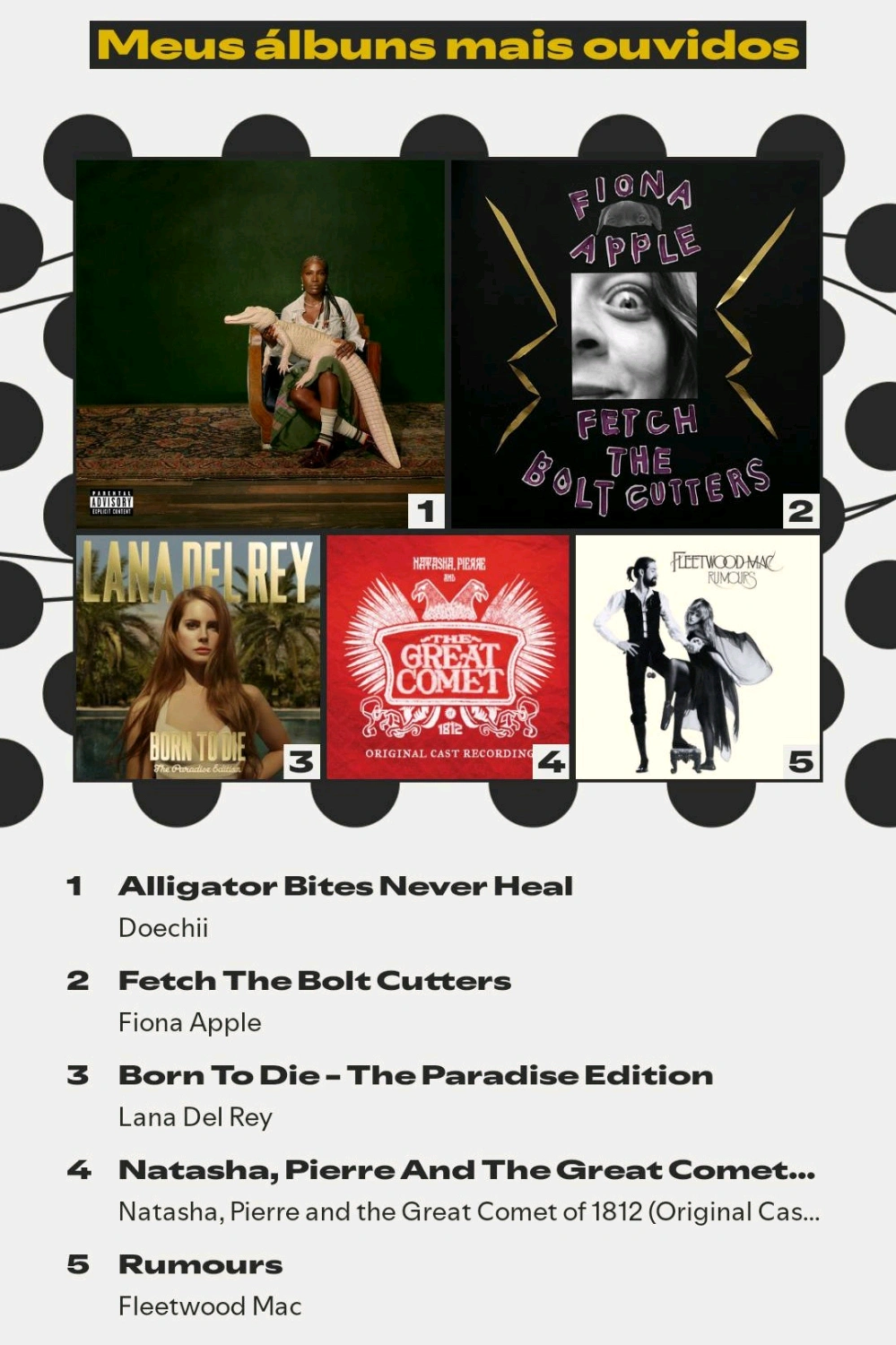 E saiu a retrospectiva !! Sempre dá uma impressão de que tá errado, mas até que concordo com os álbuns e com o tanto de DOECHII(!!!).