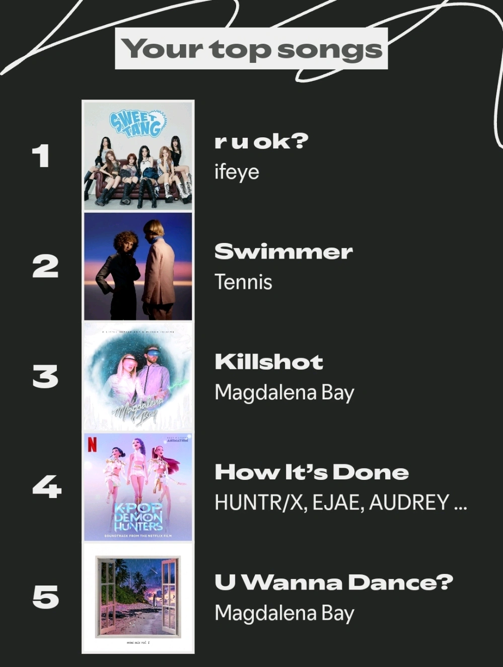 ㅤㅤ٠࣪⭑ super late to actually posting this oopsies i've been busy. but very little surprises here, except the box tree being in my top albums i underestimated how much i listened to it wow. also bittersweet as this is the first wrapped in like 4 years that ichiko aoba wasn't in 🥀 i will up my game for 2026.