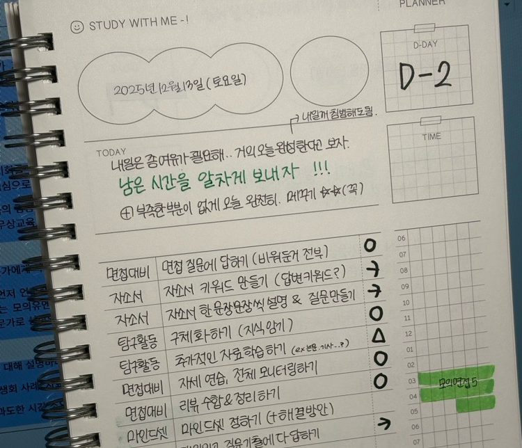 면접 준비하며 하루하루 바쁘게 살아갔던 나날들… 정말 주말이 순식간에 사라졌었다🥲 아아 내가 면접을 보다니 ㅜㅜ