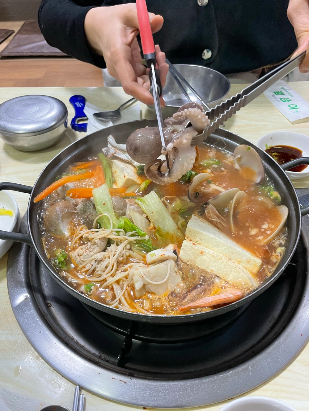 걍 숙소근처 암떼나 들어간건데 한동훈씨도오고 흑백요리사아저씨도오고 맛집같아보였다는?? 냄새도 뭔가 외할머니집온거같았음 별기대안해서근가 시원~하고 2025 마지막음식으로 나쁘지않았다! 가격이 해물탕인데 3만원?? 가심비까지 챙겨줌 ㄷㄷ 흰해물탕이었으면 좀 서운했을텐데 칼칼~한 빨간 해물탕이고 쭈꾸미도 들어가있으며 동해 소라도 두개나 들어가있었음! 반찬도 대부분 만족스러웠다!! 2025 잘가고 2026 어서오게나