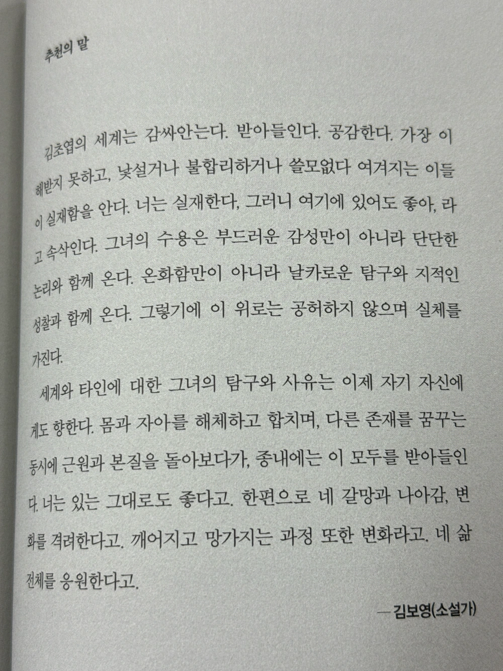 그 세계는 잔잔한 슬픔과 외로움으로 가득 차 있다. 하지만 반짝이는 것들도 있다. 나는 그 세계의 슬프고 반짝이는 것들이 나에게로 건너오기를 기다린다.