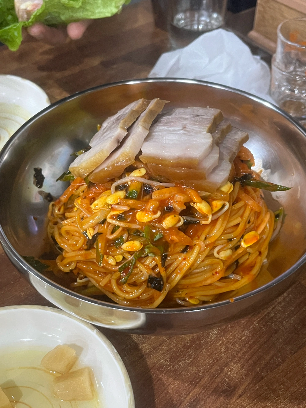 고기국수는 느끼해서 .. 비빔국수쪽이 더 나았다네요 돔베고기도 조굼 뻑뻑해요 맛없다는 건 아니고…