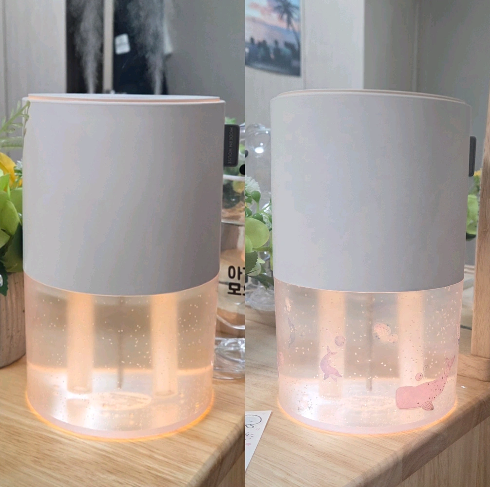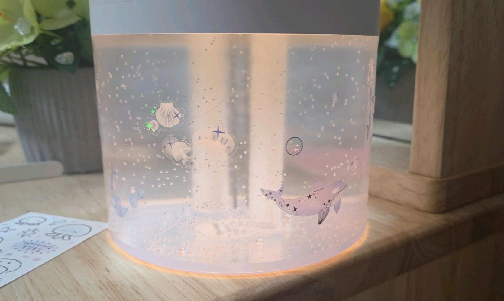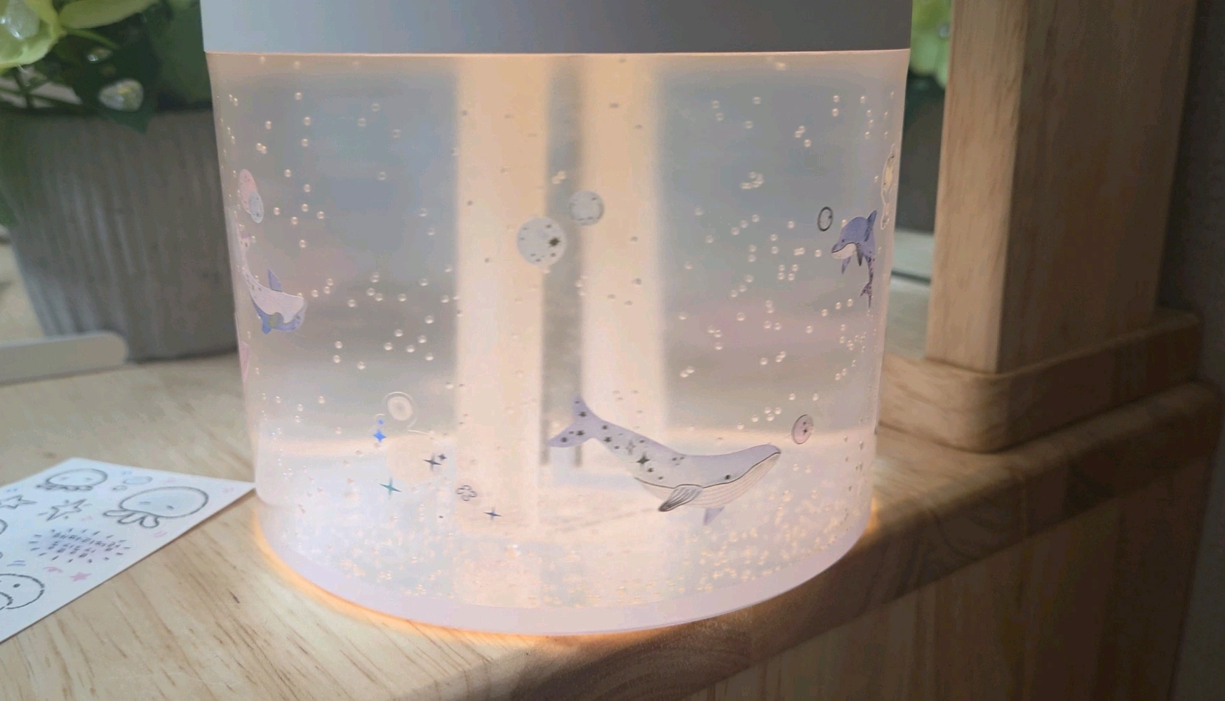 🌊엄마 아빠가 대전에서 가습기를 사오셨다! 🐳불빛이 따뜻한 색감이라 너무 예쁘고 좋았다!! 🐋 물이 보이는 통이 커서 아쿠아리움처럼 보였다!!! 🐬그래서 내가 가지고 있는 스티커들로 아쿠아리움을 만들어야 겠다고 생각했다!!!! 💦해파리, 조개, 소라, 돌고래, 범고래, 흰긴수염고래, 물방울. 스티커로 꾸몄다!!!!! 💧한 30분 넘게 걸렸다. 그래도 너무 예쁘게 완성돼서 만족스럽다!!!!!!