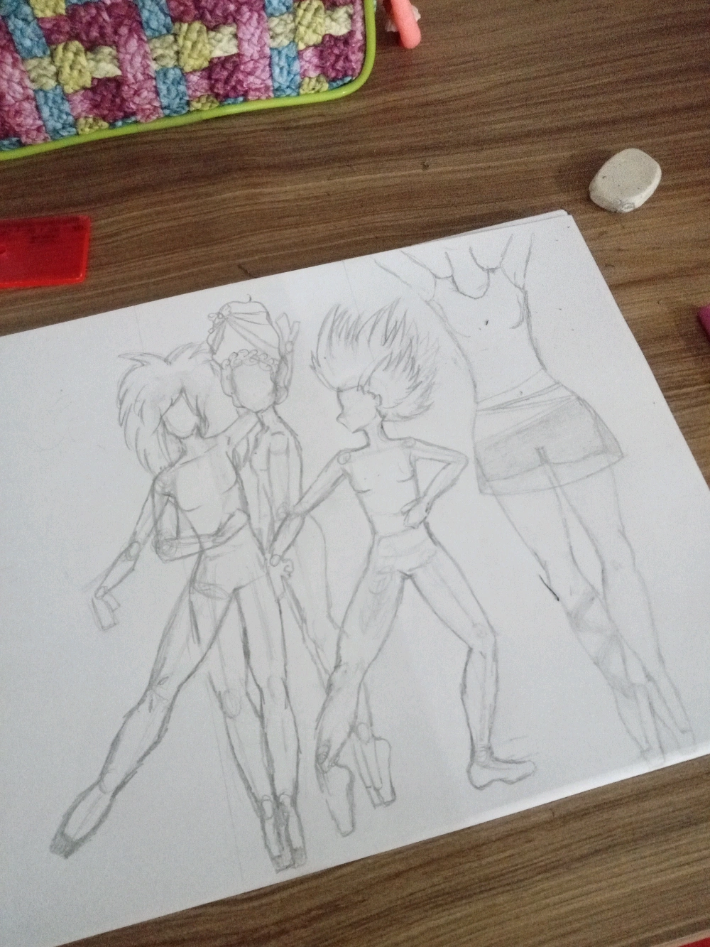 desenhei várias poses de balé, mas depois tive a ideia de fazer vários cabelos diferentes nos bonecos, gostei