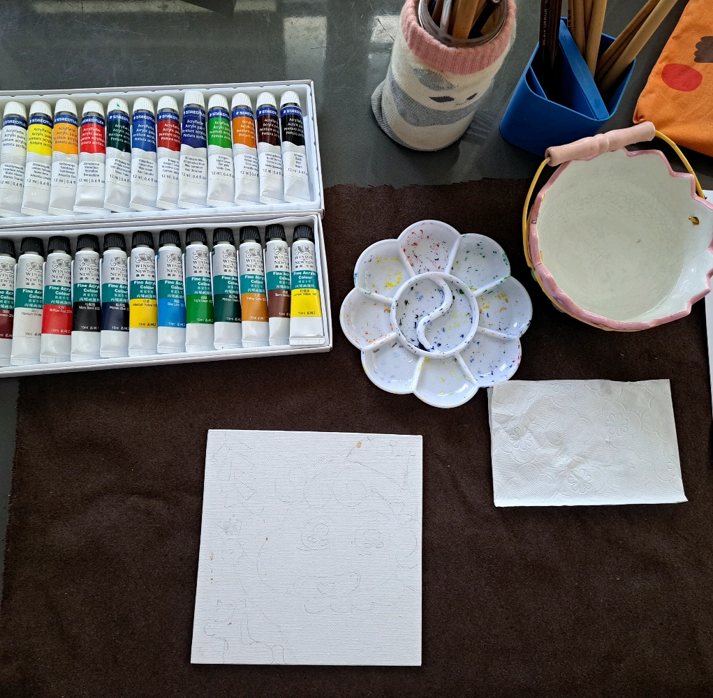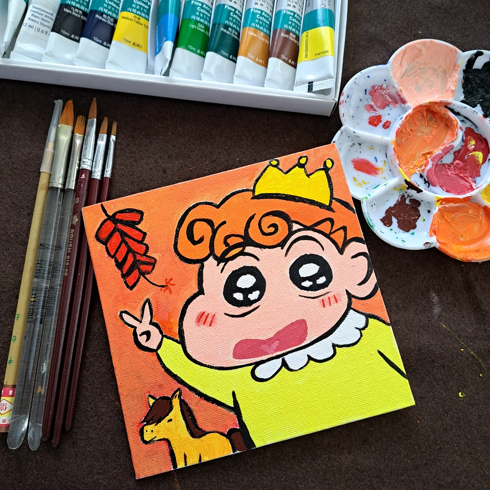 超級耐冇開壇畫畫,啲顏料盒係封晒塵,順便抹下塵,然後我發現自己有一pack趁特價買咗但未打開過嘅畫筆set*5枝裝,有諗過捐咗佢,但最後都係拆咗,今次拎幾枝黎用下。 - 啲顏料全部仲用得,可喜可賀! 因為係想送俾朋友嘅畫,所以要畫朋友最鍾意嘅小葵,係網上搵咗張圖片參考,只係想加埋新年元素,因為1月生日,所以加咗串炮仗同隻馬,小葵表情再豐富啲,同埋加多頂皇冠。 - 似就唔似嫁啦,我低估咗小葵頭髮應該要有嘅澎湃感?但啲顏色算盡量有溝番出黎,好耐冇自己手動溝過肉色,以前畫marker買過十幾枝膚色系嘅筆基本揀啱就得。 - 畫塑膠最好嘅地方係畫完將隻碟掉埋一邊,時間到就去搣乾涸咗嘅顏料,搣唔乾淨都冇所謂,反正佢冇辦法溝落下一次嘅顏色入面,乾咗就乾咗,其實做人都應該要係咁,舊事的確係抹唔走,最多咪又係丟淡,所有發生過嘅事係塑造緊依家嘅自己,但可以唔俾舊事去影響自己,點都係要繼續向前望。