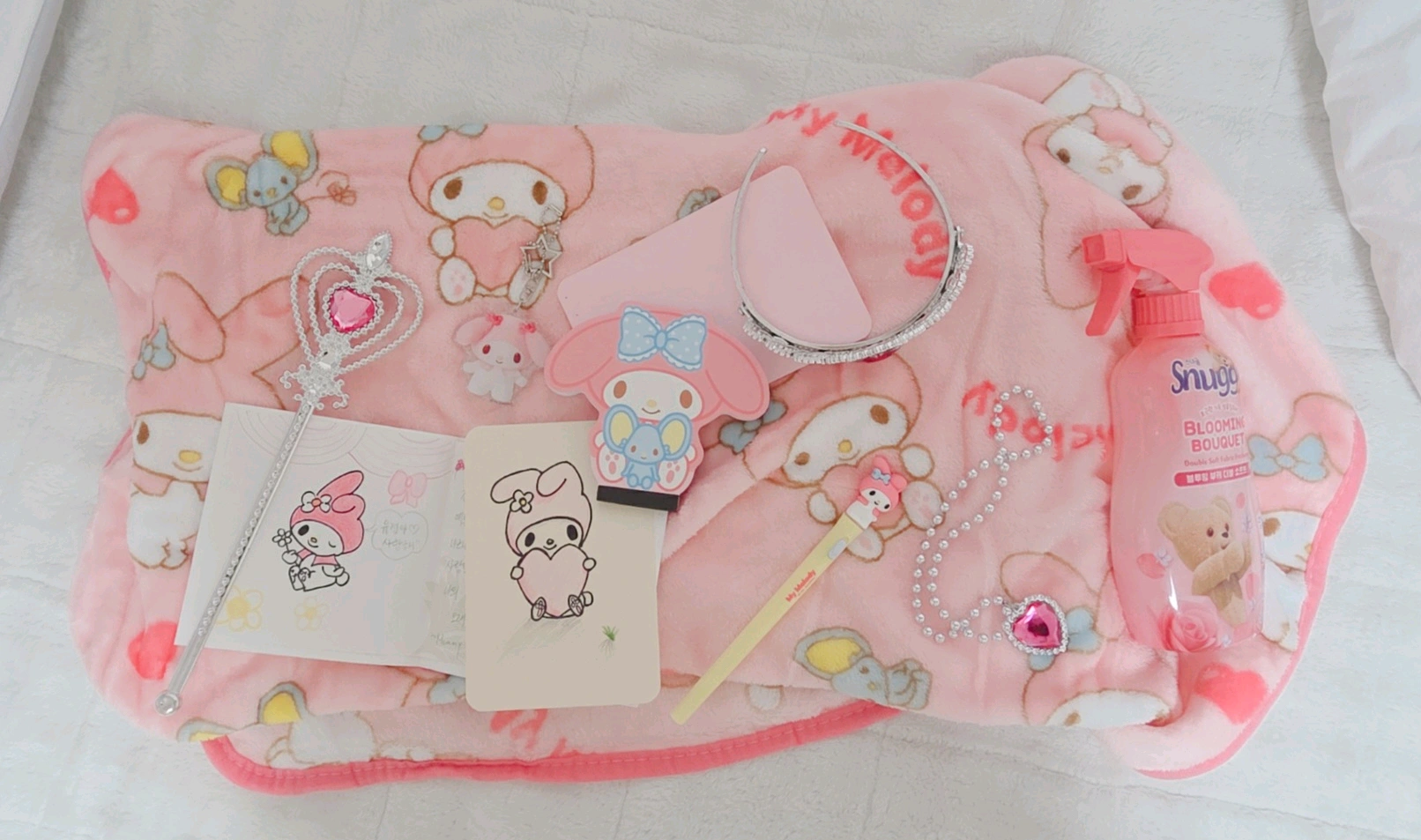 ₊˚ ‿︵୨୧ · · ♡ · · ୨୧︵‿ ˚₊🩷₊˚ ‿︵୨୧ · · ♡ · · ୨୧︵‿ ˚₊ <내 생일 선물들 ~•🌸▪︎・*🩷。.+・🧼°•.・⁽⁽ପ( ˘͈ ⩊ ˘͈)ଓ⁾⁾> 드뎌..! 내 생일💫✨️🎂🎉 🎈)))--> ꒰ঌ ૮ ོ .• ༝ •. ོ𑁬 ໒꒱ ■ 엄마랑 남동생이 생일 축하 편지를 써줬다! 내가 좋아하는 마이멜로디를 그려준 가족들이 너무 귀엽고 고마웠다.🌸 *+:꒰◍•○•◍꒱:+* ■ 스너글 탈취제 제외하고 볼펜, 메모장, 키링, 담요까지 모두 마이멜로디라 너무 좋았다. 뭔가 마이멜로디 랜덤 선물박스나 하울한 느낌이어서 하나씩 집어서 꺼낼 때마다 설렜다.🩷 ‘٩꒰。•◡•。꒱۶’ ■ 내가 공주 컨셉🏩👸으로 하고 사진찍고 싶다고 엄마한데 말했을 땐 그냥 흘려들은 줄 알았는데, 그 말을 기억해주고 문구점 가서 공주세트를 사온 엄마를 보고 너무 좋아서 입에 미소가 끊이지 않았닼ㅋㅋ🧼 +++아.. 생일인데ㅠㅠ 학교에 7교시(04:30)까지 같혀있느라 좀 속상했으나, 내 생애 이렇게 많이 그리고 멀리있는 친구들에게 축하받아서 이번 생일은 나중에도 많이 기억날 것 같다. ₊˚ ‿︵୨୧ · · ♡ · · ୨୧︵‿ ˚₊🩷₊˚ ‿︵୨୧ · · ♡ · · ୨୧︵‿ ˚₊
