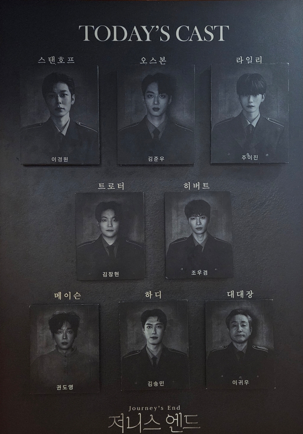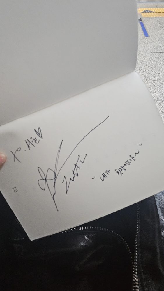 저니스엔드 자셋 2.4 밤공 이경원 김준우 주이진 페어 맞아요....저 저엔 또보고왔어요 어흑 일요일에 막공도 가니까 극에 대한 총평은 자넷때 하고 지금은 간단하게만 할게요.. 이경원 김준우 페어인데도 자둘보다 별점 높은건 이경원 배우님이 저번보다 괜찮았어서!! 사실 자둘때는 약간 튕겼는데 이번에는 꽤나 좋았다 주이진 배우님이 하시는 라일리도 처음 봤는데 서승우 배우님이랑은 다른 느낌으로 좋았음🤤 그리고 준우님 퇴길 얘기를 할게요 이날은 밤공이어서 후딱하고 지하털타러 달려가야했음 다행히 3번째?로 퇴길 받음 셀카찍어달라 했고, 어흥 해달라고 함 너무 커엽게 해주셨어요.... 그리고 백사띠라고 해서 흰색 뜨개 뱀을 떠갔는데, 진짜 너무너무너무너무 좋아하셔서 내가 다 감사했음.. 싸인노트 만들고싶어서 급하게 장만한 노트에 싸인 부탁했는데 본인이 첫 장이라고 저렇게 적어둠ㅋㅋ초딩이냐 당연하지 공연들어가기 5분전에 텐바이텐에서 새로 산 노트니까... 사실 물어보고 싶은거 더 많았는데... 미남 앞에 서니까 다 까먹어서 하나도 못물어봄 그래서 막공 예매했어욤!ㅋㅋ