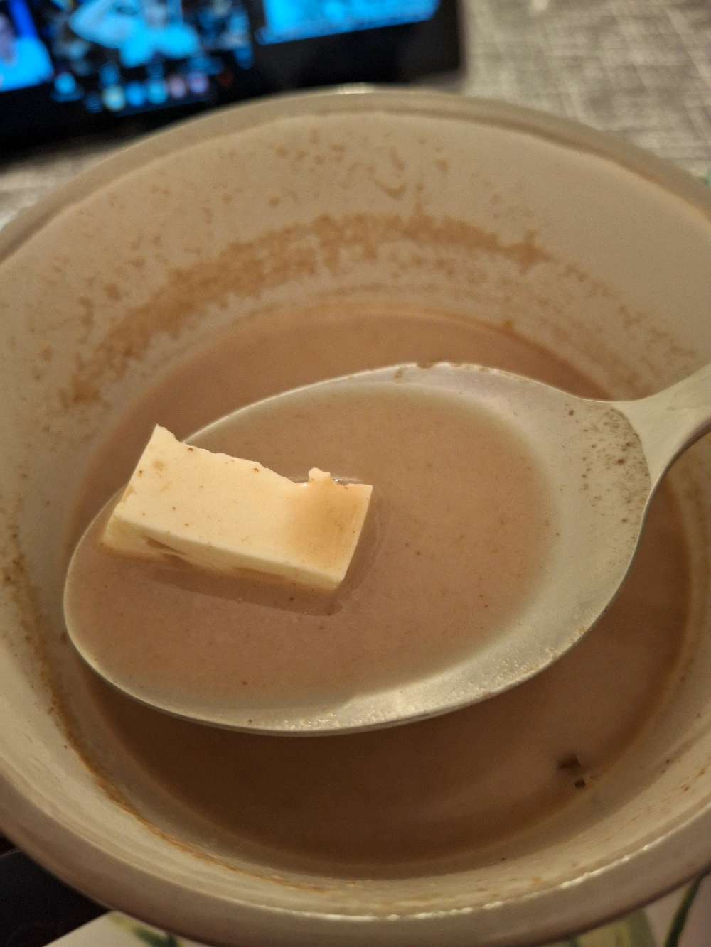 I had some cheese left, and figure I'll make some hot chocolate and eat it with it, I also baked some corn bread filled with guava sweet? mermelade? (bocadillo)