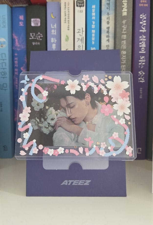 🏴☠️ 앨범 컨셉이 딱 내 취향이라 이건 무조건 사야해!! 하고 샀음!("조직보스에 마피아"? 이건 무조건 사라는 거지!!!) ☠️ 8명 중 4명이 왔고 총 12장 중 2, 2, 3, 5 이렇게 왔다. (8명 다 넣어주고 거기서 몇 명만 추가로 넣어주면 좋겠지만, 그럴 일은 없겠지?ㅋㅋㅋㅋㅋㅋ) 🏴 빨리 따뜻한 봄이 왔으면 좋겠어서 벚꽃 컨셉으로 꾸며봤다. 포카와 찰떡인 사진을 발견하지 못할 까봐 불안했는데 다행이 있어서 안도했다. ㅎㅎ 🏳 중복 포카인 줄 알고 교환하려고 했는데 지금 자세히 보니 배경, 얼굴, 위치만 똑같고 손 모양만 다른 거였음..ㅋㅋㅋㅋㅋ (속았다.ㅋㅋㅋㅋㅋㅋ) 🕶 엄마가 좋아하는 멤버(윤호오오오오우)가 안 나와서 중복인 줄 알았던 포카로 교환하려 했는데 엄마가 안된다고 가져가심 ㅋㅋㅋ 아까 봤는데 안방 침대 협탁 위에 무드등으로 안 떨어지게 올려두셨다. ㅋㅋ (너무 귀여웡) #ATEEZ