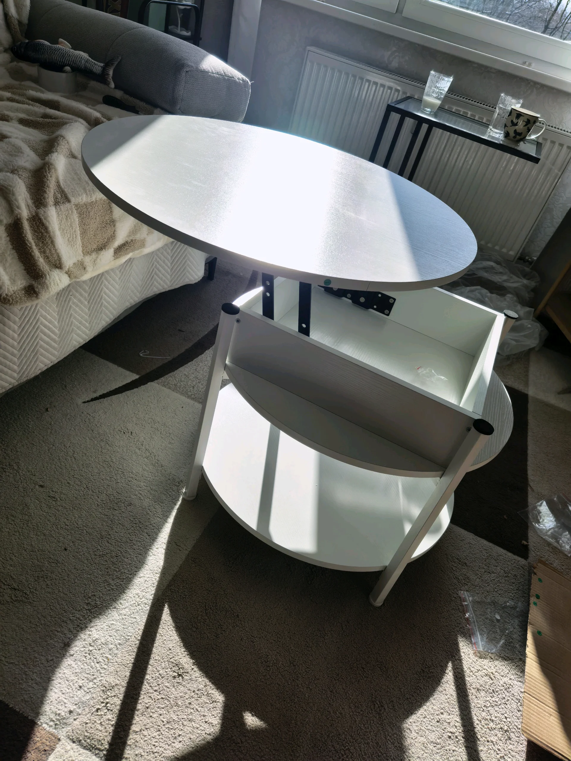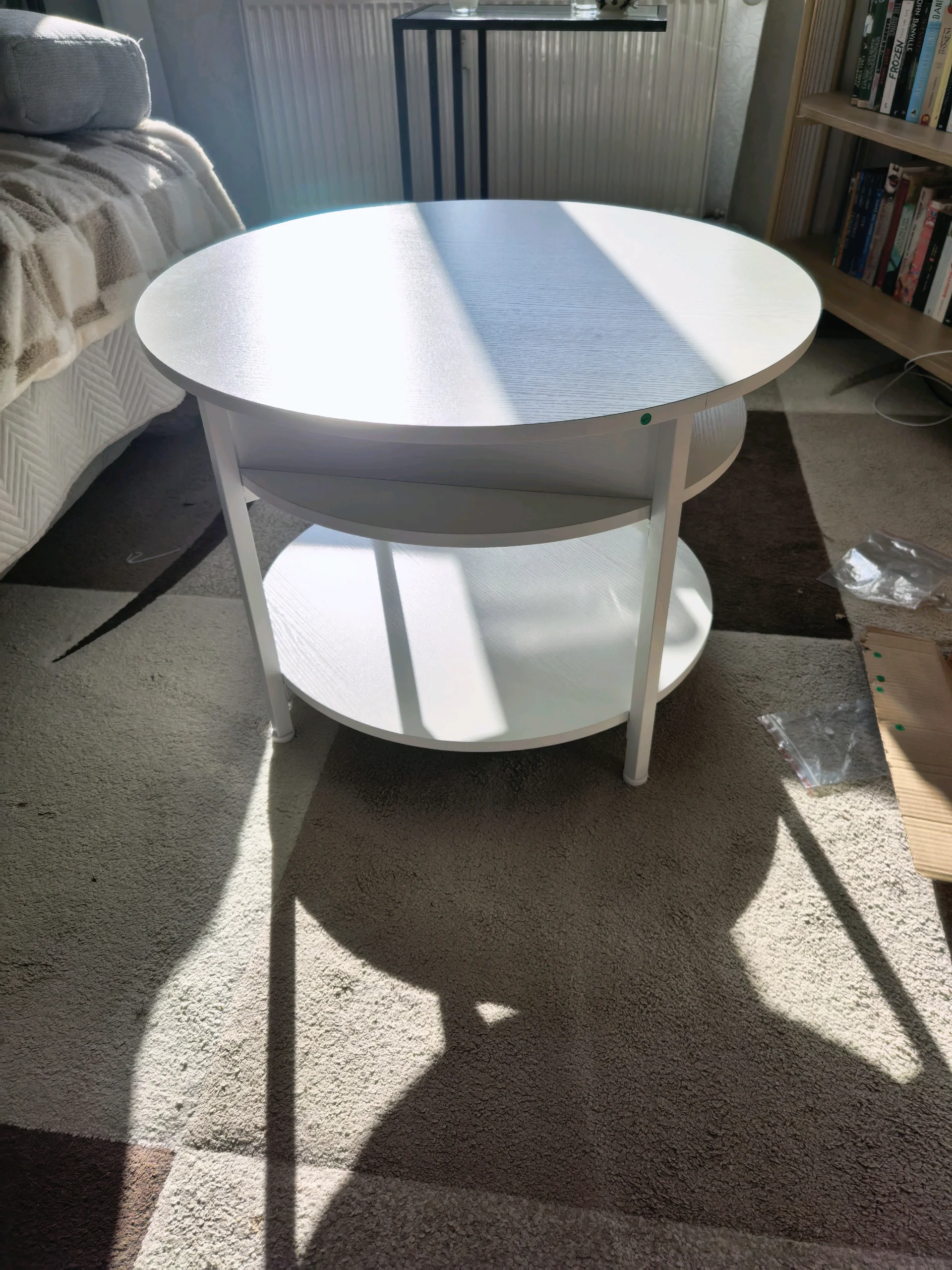 Finally have a new couch table wich allows me to easily eat and work on the couch while watching tv and not bending over. I am proud of myself for building it all by myself ^^ (ok Sjoma helped morally) But I must say, the instructions were really easy to understand and all the pieces were titled. Its rare to get a good tought out furnature instriction. I will add 4 small white wheels and a cute white table cloth in the future (already ordered)