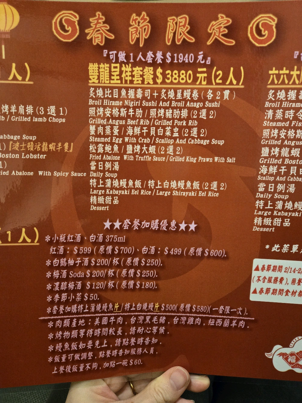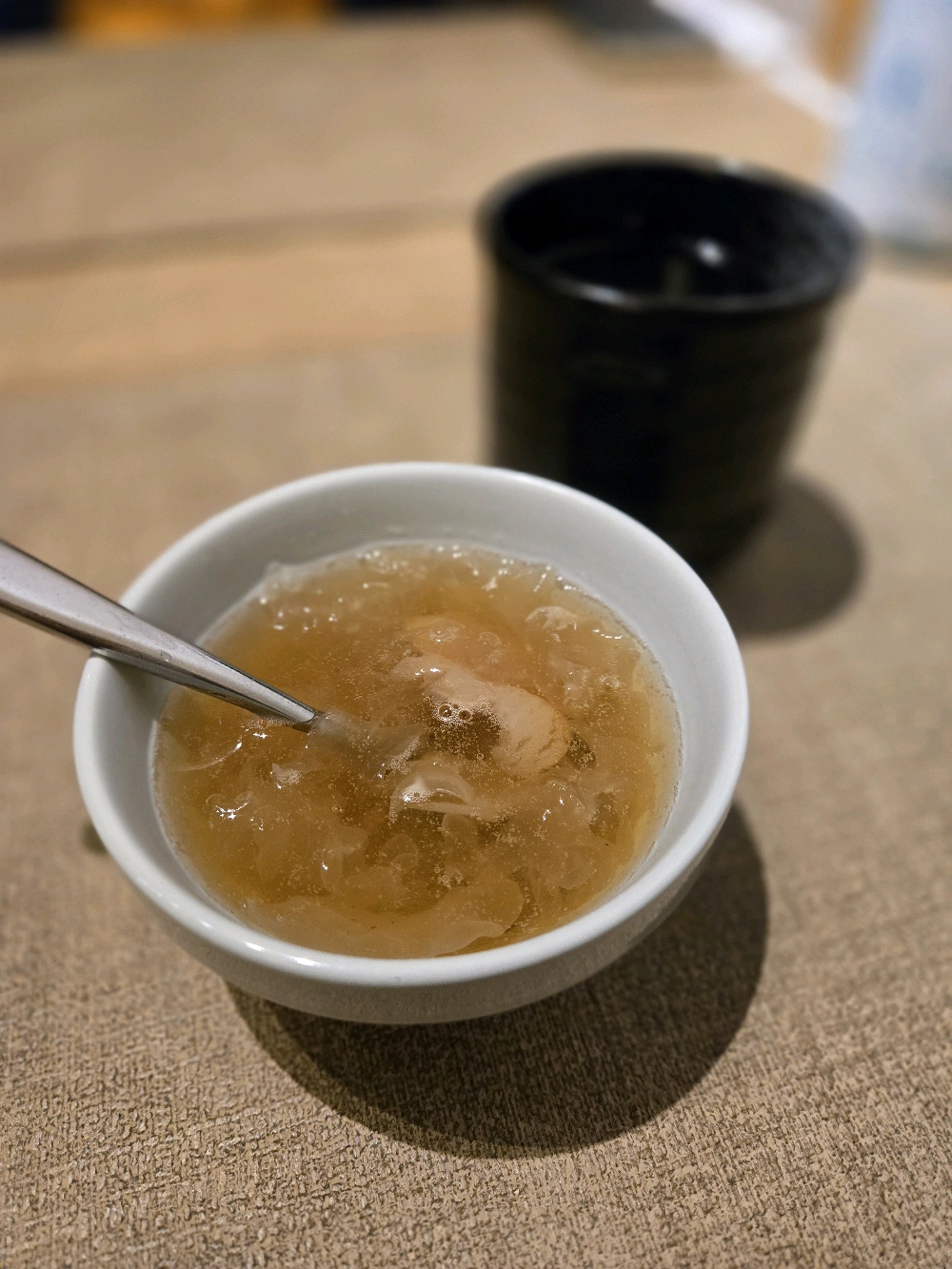 除了蟹肉蒸蛋和海鮮干貝白菜盅個人覺得比較普通外,其他的菜都很好吃,服務也還不錯。就是貴了點(X 鹽烤大蝦很扎實 Q 彈,沒想到松露鮑魚是炸物(回頭看才發現英文菜名有寫),松露醬很好吃。 我算是沒有太喜歡鰻魚飯的人,但劍持屋的鰻魚飯滿合我的口味,居然不會覺得太鹹。 今日甜點是熱銀耳湯。 ❤️ 感謝愛&赫幫忙來陽光美宅照看小動物 ❤️ 感謝金主宏哥&想到帶我出門晚餐約會