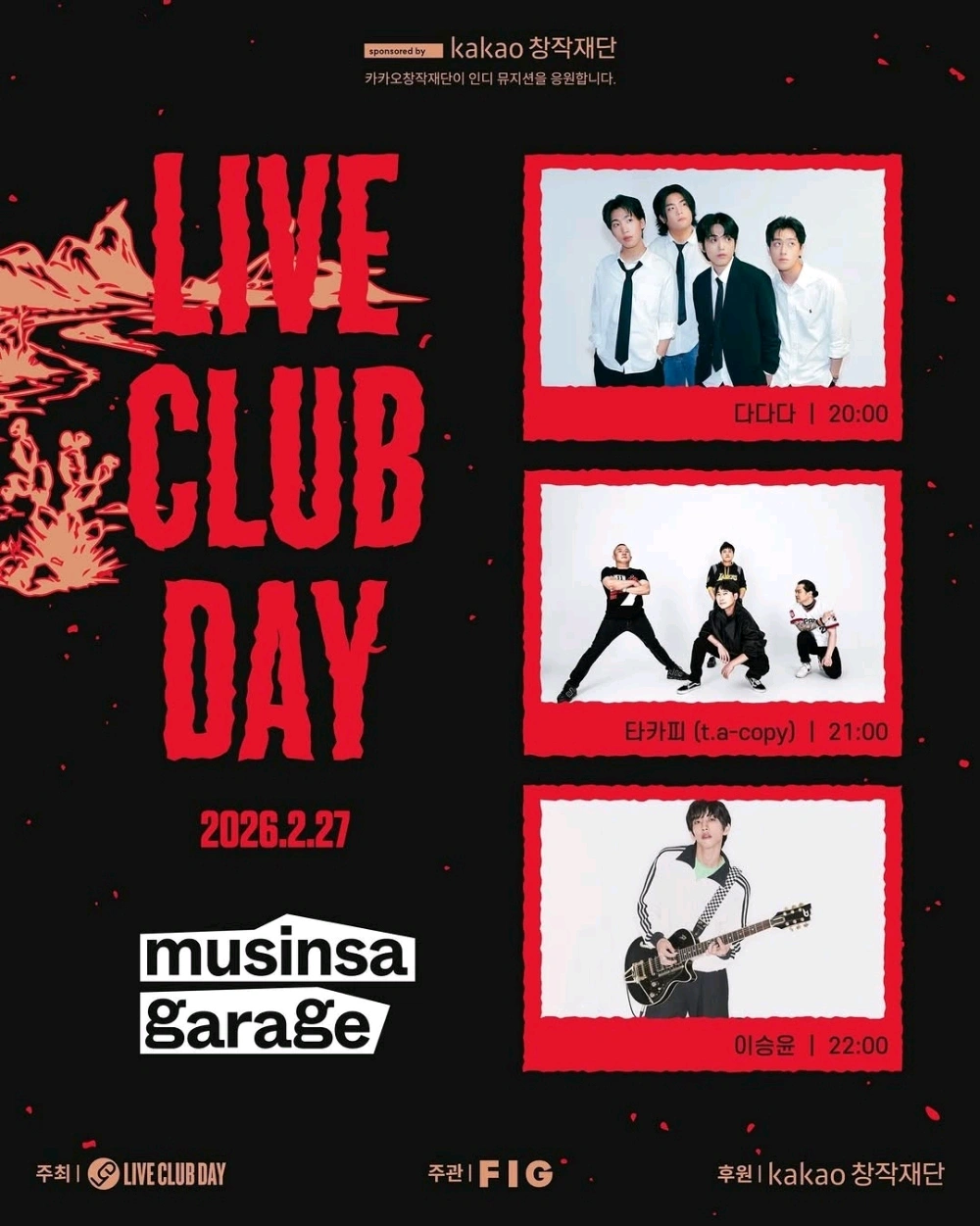 라클데에 다녀왔어요!!!!!!!! 참고로 내 첫 라클데였음 완전히야르다 원래 라클데라 함은....클럽 여러 군데를 돌면서 원하는 가수들의 공연을 보는 거지만 그러다가는 공연0개볼것같아서 그냥 무개에서 죽침 다다다님들은 노래조차 몰랐고, 타카피는 몇개만 아는상태 근데 다다다님들이 너무너무 내취향인거임!!!! 노래도 재밌고 공연도 잘하고....신생밴드고 암튼 완전 내깔이었음 그래서 입덕했고, 다다다가 공연 중간에 단공홍보하길래 바로 폰켜서 예매함** 그리고 이승윤이 저위를 원숭이처럼 올라감...농담이 아니라 진짜 원숭이처럼 난간을 타고 올라갔습니다ㅁㅊ 라클데 짱재밌었음 후후 이게 4만원이라니 진짜 가성비ㅇㅈ드립니다!!!!!!🤘🏻🤘🏻