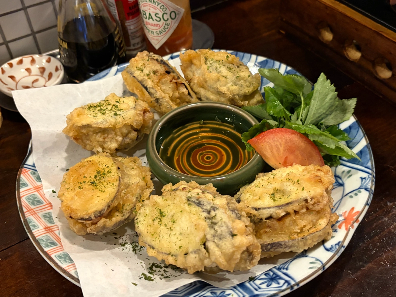 평택에서 내 최애 이자카야.. 🌀🫶🫶 두번밖에 안 갔지만 분위기가 넘 좋고 메뉴가 다 맛있다!!! 하사미아게 (가지 사이에 고기를 넣어 튀긴 요리) 가 정말 미친넘이다….