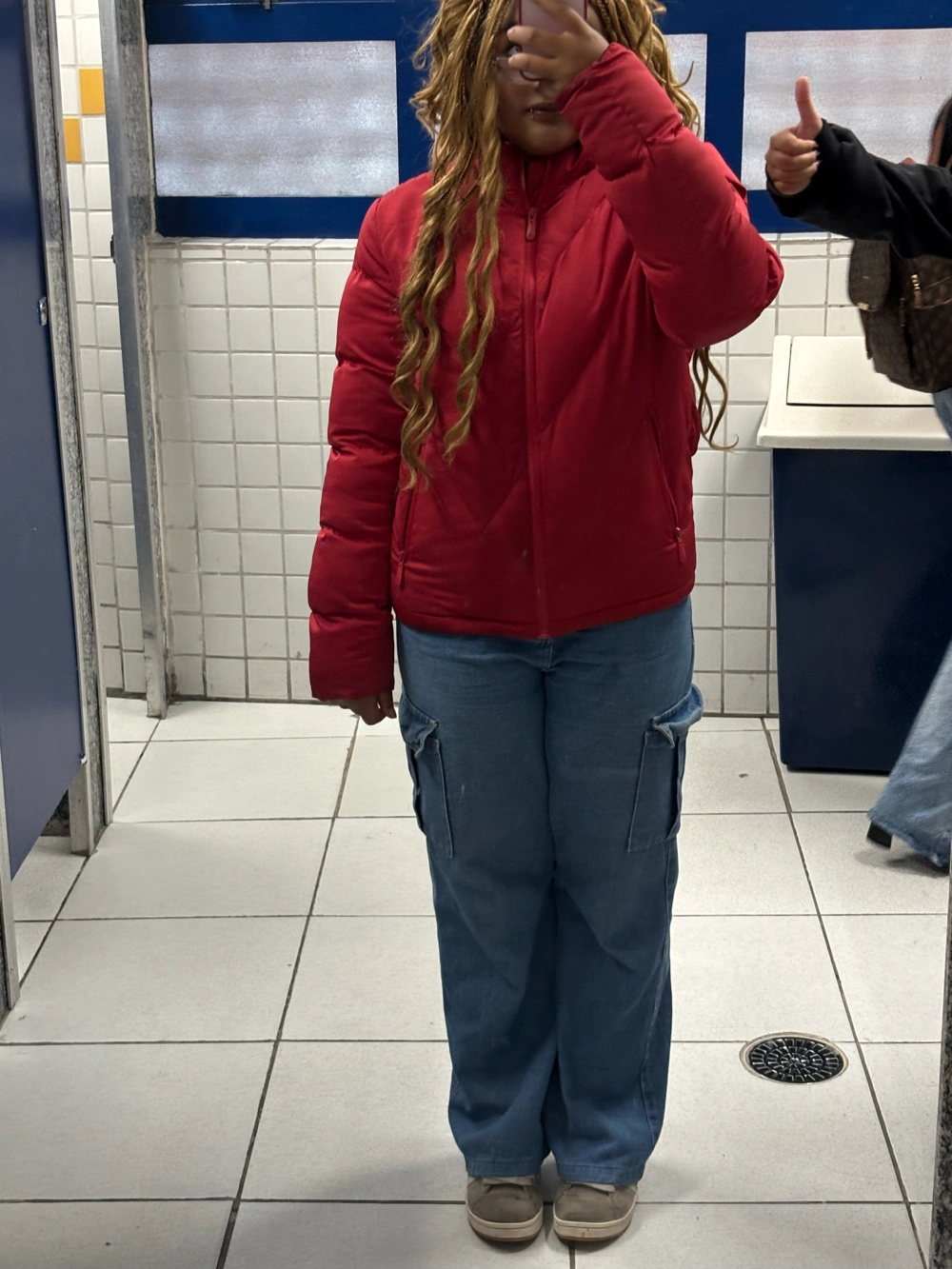 roupinha simples e ainda tive que ir com uma jaqueta deeesse ✋ 🤚 tamanho pq minha mãezinha não quer que eu fique doente *a jaqueta👇