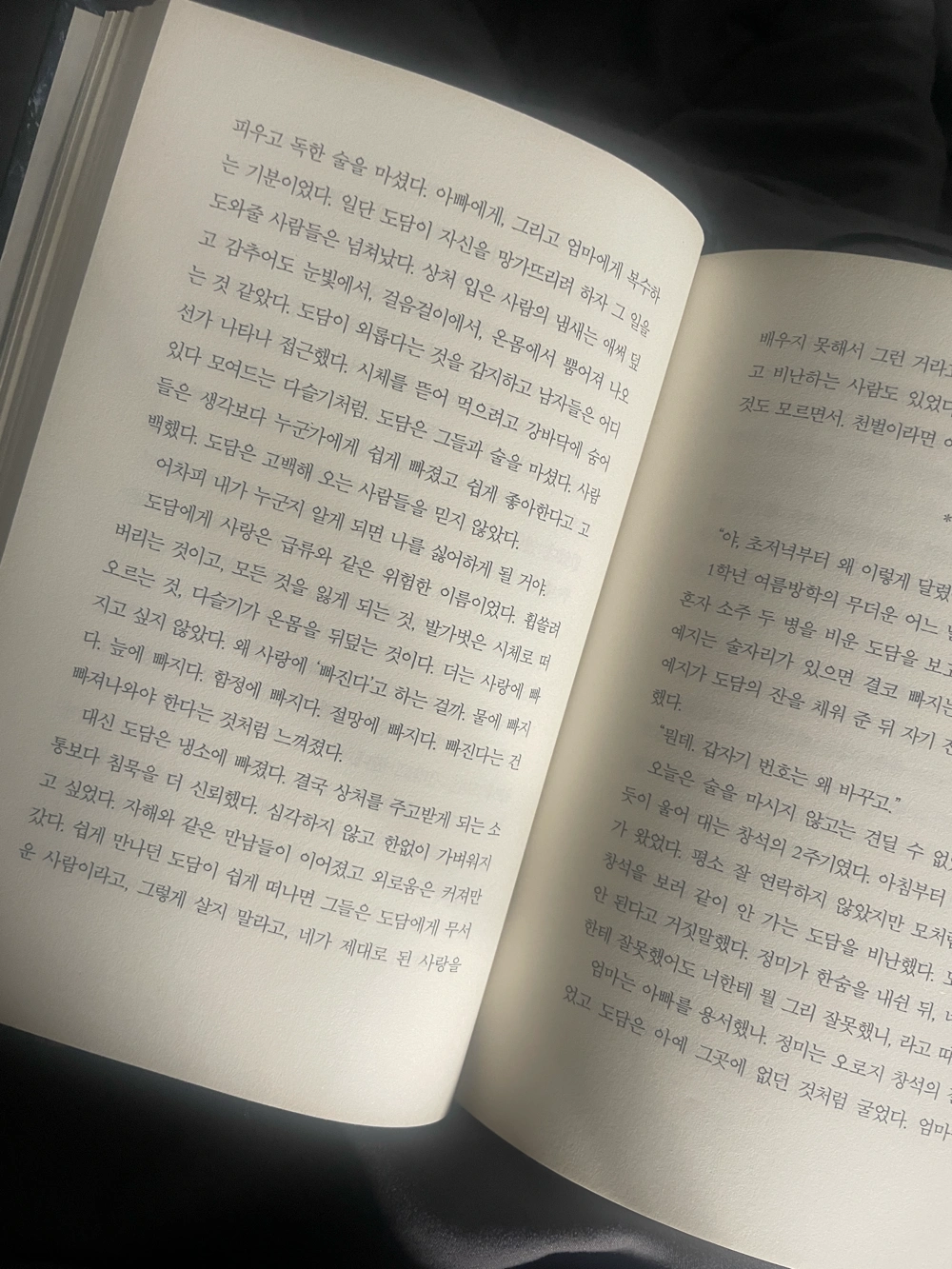 주변에서 추천한 책이라 읽게 되었다. 문체가 담백하고 필요하지 않은 미사어구가 없어 술술 막힘없이 읽히긴 했지만 개인적으로는 굉장히 자극적이었고 내용 또한 좋지 않았으며 불륜에 대한 미화가 심하게 느껴졌다. 주인공인 도담과 해솔의 이야기를 그저 ‘어린 고등학생들의 어리숙했던 사랑 이야기’ 라고 치부할 수 있을까? 결론적으로 말하자면 불륜을 저지른 도담의 아빠 창석과 해솔의 엄마인 미영이 밤에 계곡에서 데이트를 하다가 그 뒤를 몰래 밟고 있던 도담과 해솔에게 플래시로 비춰져 그에 놀라 계곡의 급류에서 헤어나오지 못하고 떠내려가 죽게 된 것이 이 책에서 도담과 해솔의 가장 큰 갈등의 원인이었다. 도담은 창석과 미영의 불륜을 보고 아빠 창석에게 배신감을 많이 느꼈고 괘씸해 했지만 창석과 미영이 사고로 사망하고 나서 큰 충격을 받게 된 도담과 해솔은 서로 자연스레 멀어졌고 그 이후 도담은 대학 생활 내내 마음 한 켠에 있는 외로움을 달래기 위해 새로운 사랑을 찾는 과정에서 결국 도담이도 창석과 닮아있었고 본인이 잘못한 것은 무엇인지 인지하지 못하고 끝나버린 것이 아쉬웠다. 해솔은 무던하지만 정이 많고 헌신적인 성격으로 창석이 자신을 구해준 것을 잊지 않고 창석과 같은 소방관이 되어 한 생명을 구해내는 모습을 볼 수 있다. 큰 감정 변화없이 묵묵하게 자신의 일을 해내는 모습이 대견하고 존경스러웠으며 회피하지 않고 죄책감을 내려두고 살아가라고 말해주고 싶다. 도담과 해솔은 시간이 많이 지나도 여전히 과거의 일에서 빠져 나오지 못했다. 정반대의 성격을 가지고 있어 서로 불안을 느낄 수밖에 없는 위태로운 연애를 해온 것이었다. 20대에서 30대로 바뀌는 시점에도 변함 없는 모습을 보인다.