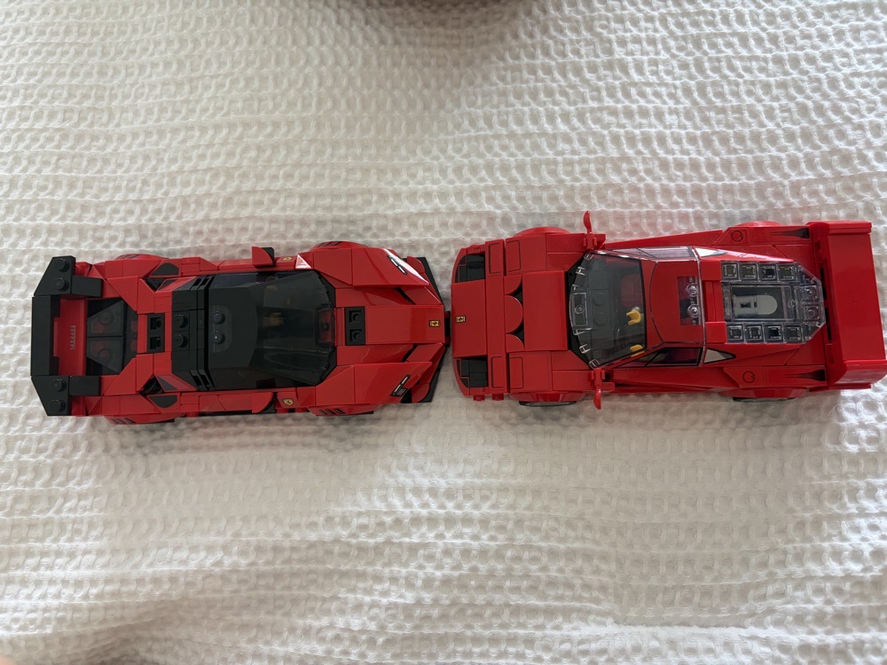 i just made another Lego car to add to my collection. it’s a Ferrari sf90 and it pairs perfectly with my Ferrari f40. I like the aesthetic of th Ferrari f40 better. I added it to my little Lego car shelf! I hope to have the chance to add more later on ⭐️ which do you like better?