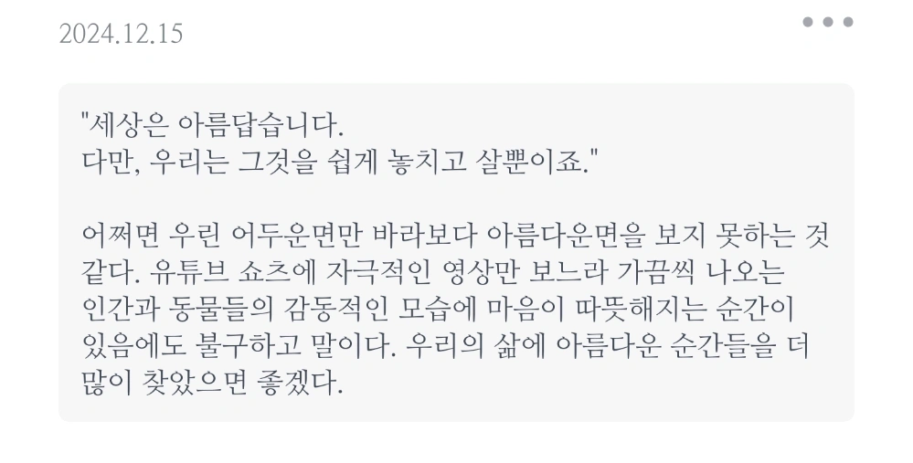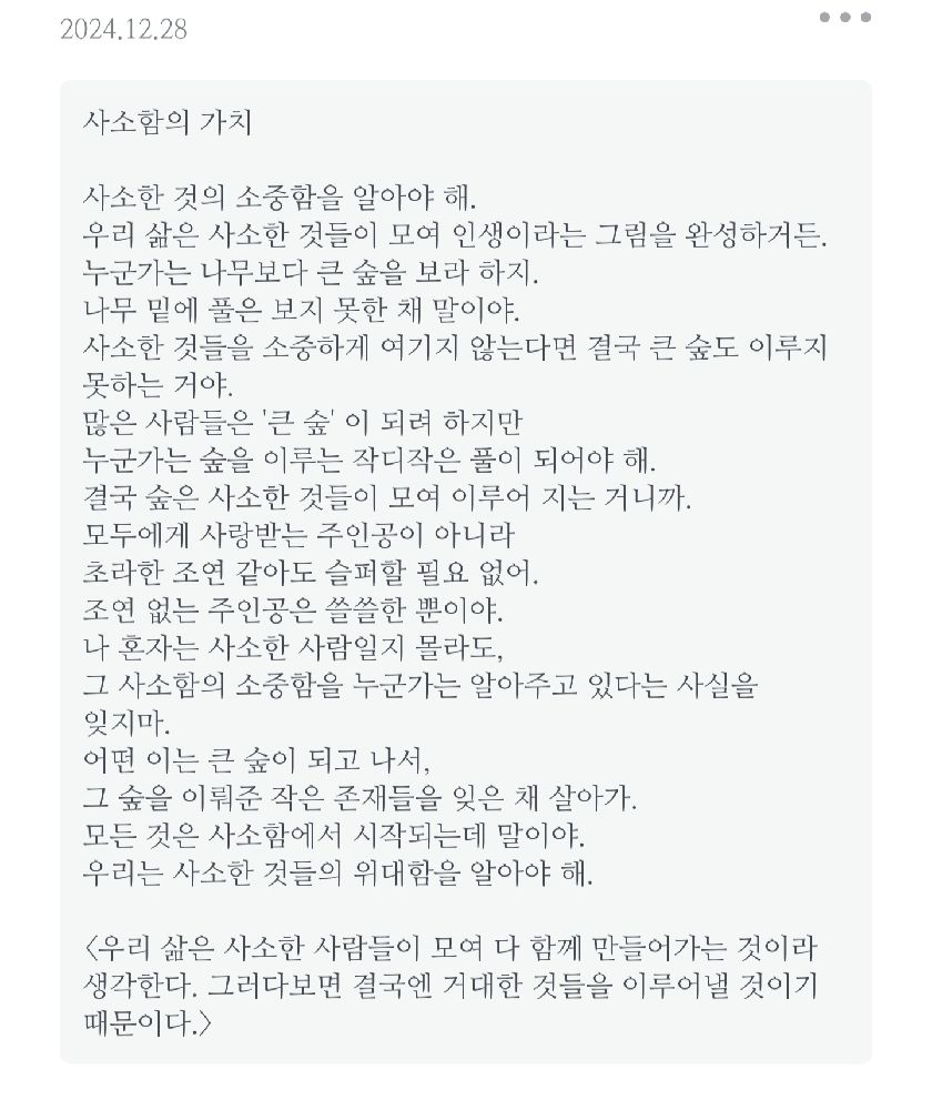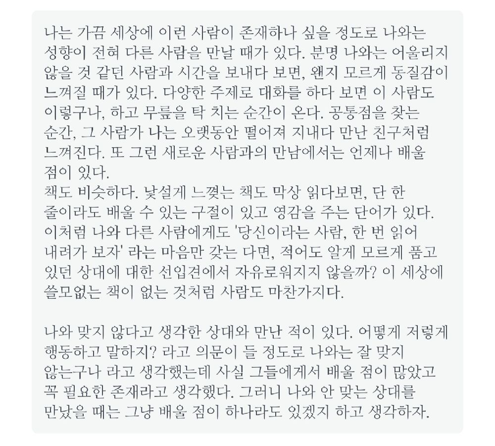 <크으으ㅡ 잘 썼다ㅋㅋ> 🪻예전에 쓰던 앱(책 기록)을 들어가봤다. 🌼 🌷내가 저런 말도 했던가? 좀 귀엽네ㅋ 🌸 🌹매일 아침에 눈 뜨자마자 일어나서 책을 촤라라라 펼친다. 그리고 딱 멈춘 페이지에 글을 읽는다. 🌺 ☘️ 아침에 글(에세이)을 읽으면 기분 좋게 하루를 시작할 수 있어서 좋다.🌿