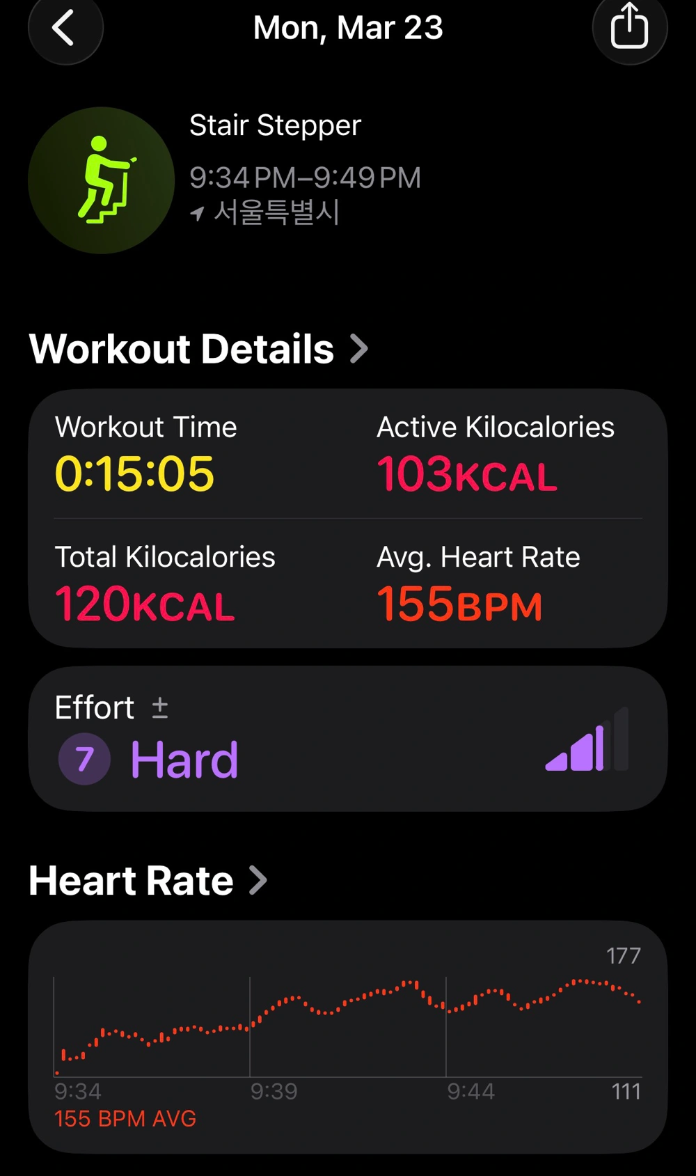 어깨가 지글지글 타는거같음… 글구 어깨 높이가 좀 비대칭이라서 프레스 동작들 거울로 보면서 되게 거슬림 필테하다가 와서 더 그런가 피티쌤이랑 할땐 죽을거같아도 심박수는 안올라갔는데 혼자 하니까 치솟네… 무산소…여야하는데…