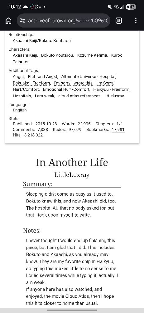 i didnt even have to scroll down to see the fic i already knew it was in another life js by looking at the song u posted💔💔