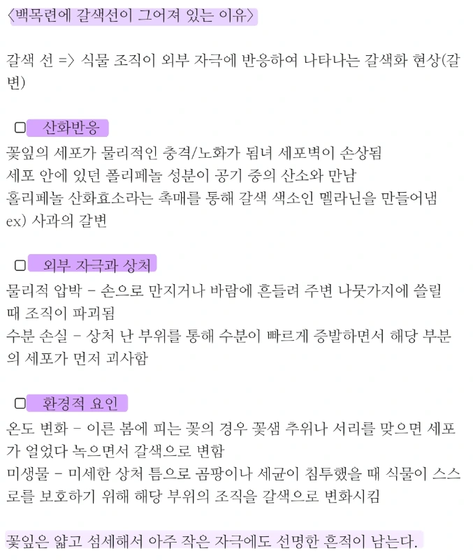 https://sojoong.joins.com/archives/tag/우리-주변-식물들의-비밀-이야기 🪻내가 식물에 대해서 궁금했던 지식들이 담겨져 있어서 좋았다. 그림도 직접 그리시는 것 같은데 내 스타일이여서 만족 >3< 식물 관련 기사가 50갸 점도 있던데 쉴 때 노트에 정리해둬서 자주 봐야겠다.!! 식물박사가 되고야 말테야~~ 🌷학교 점심시간에 친구들이랑 목련 잎을 주웠다. 그러다가 문득 궁금증이 생겼다. '백목련에 왜 갈색 선들이 그어져 있을까?'라는 찾아보니 갈변 현상과 연관이 깊다고 한다. 물론 누군가한데는 뻔하고 그저 상식이라고 생각할지도 모르지만, 나에겐 이런 사소하거나 하찮게 보일 수 있는 궁금증들이 너무 큰 행복이다. 학교에서 처음보는 지식을 배우는 것도 좋지만, 내가 정말 알고 싶고 배우고 싶은 지식을 배우고 궁금증이 해소될 때가 너무 즐겁다 ㅋㅋㅋㅋ 🌸🌷🌿