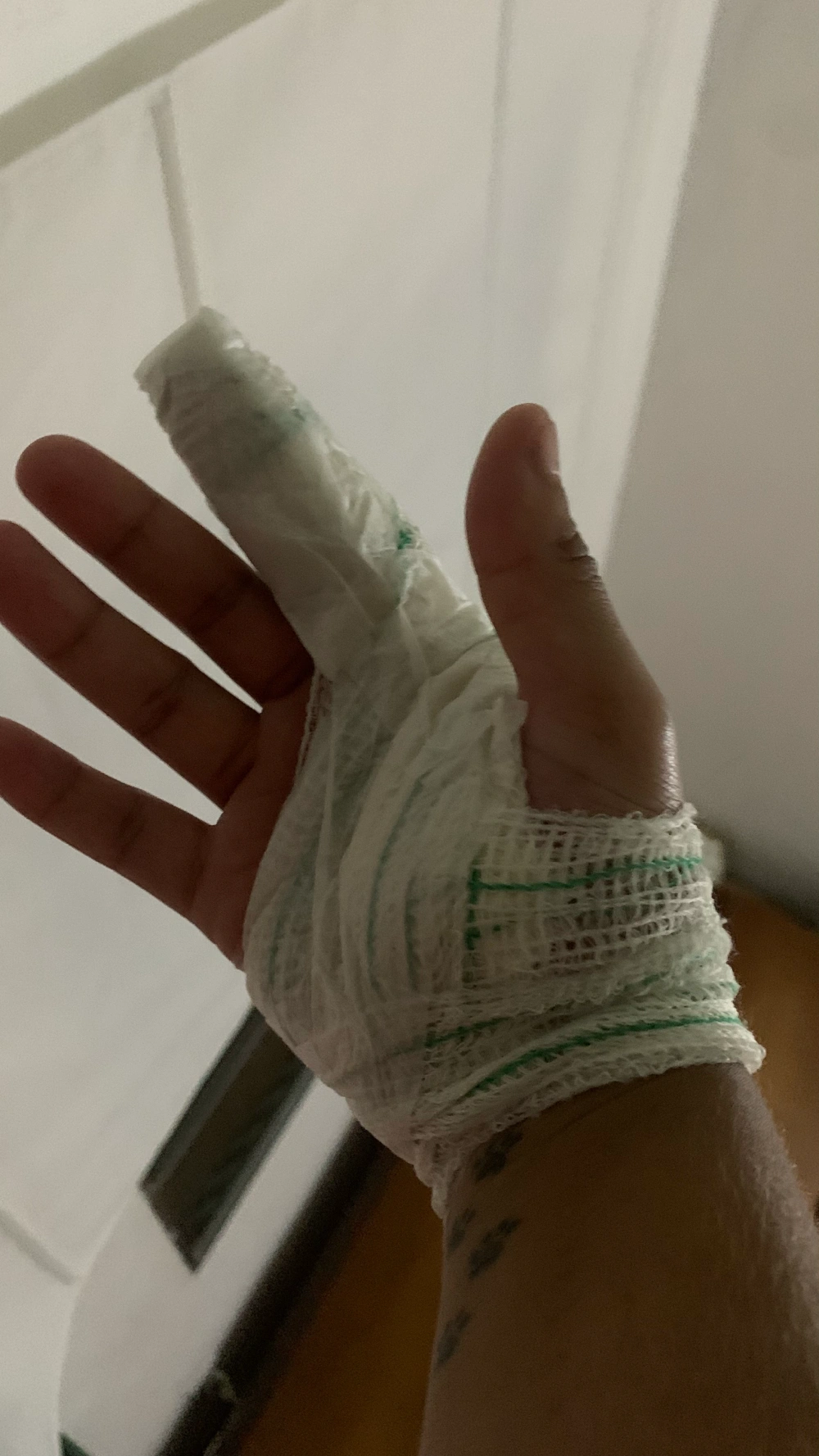 Não deu bom. Não quebrei nada, mas vou ficar com isso (a tala) durante uma semana, pq meu dedo ta bem doendinho e inchado. Dito isso, viva o volei!!!