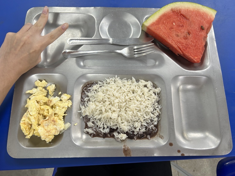 Estou feliz, fiz uma dinâmica boa hoje na escola, o dia está bonito, árvores, falei com pessoas, adoro meus materiais. Pela primeira vez o arroz e feijão da escola estavam uma delícia, muito bem temperado.