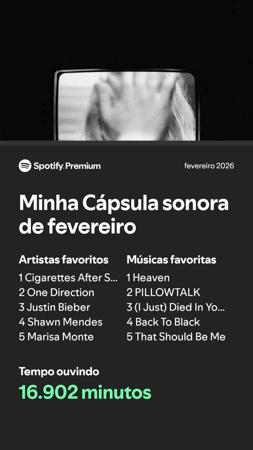 e eu que tô com Spotify premium agr e fui ver a cápsula sonora de fevereiro. e mano😦
