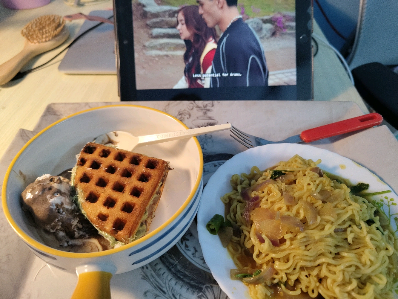 Waffle sandwich and maggi