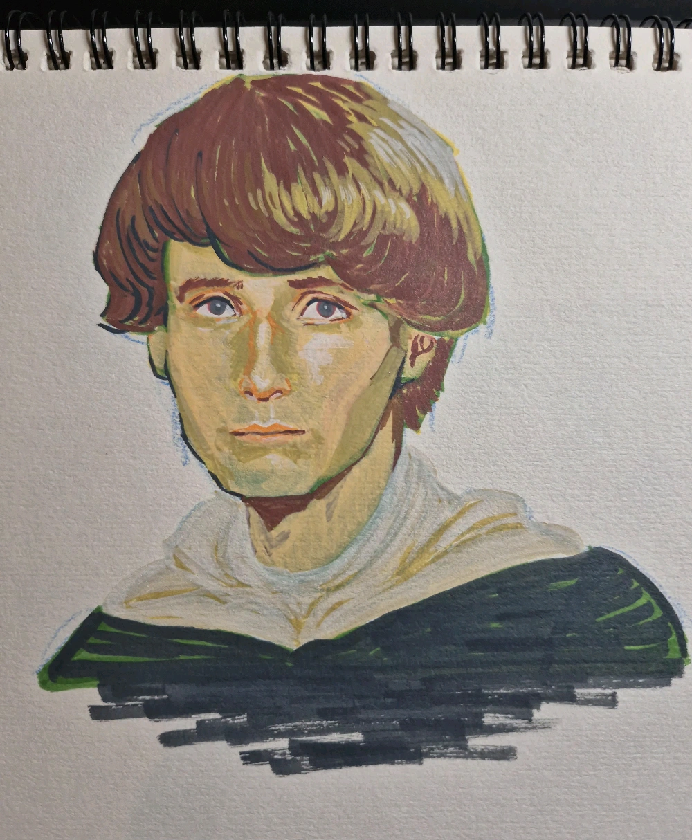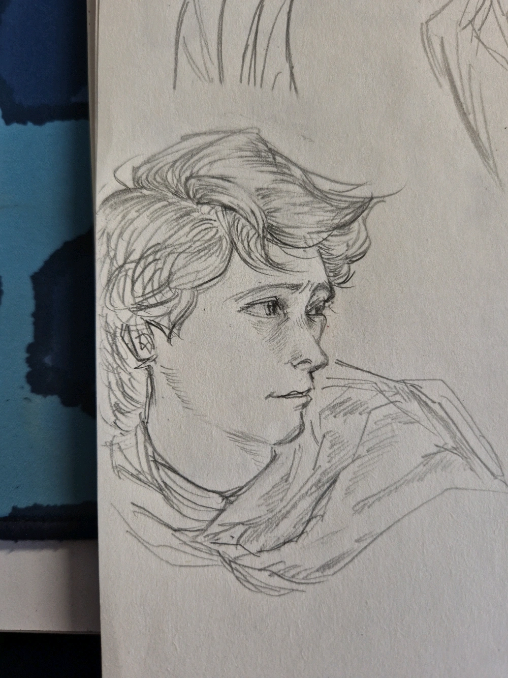 i just got my first fountain pen today! it's a Jinhao 82 using Diamine Ancient Copper ink. although I'm not used to drawing with a fine tip, it has a really nice feel...maybe because of the nib? i love it. Since I'm lowkey(really?😝) obsessed with The Pitt right now, I drew some robby/noah and dennis/gerran sketches for testing, as well as practicing my coloring feat. noah wyle haha
