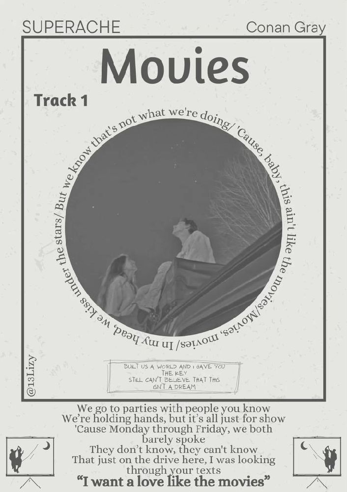 Movies has got to be, hand down, my favorite Conan song! It just speaks to my being in a way his other songs just dont quite reach (they come close but not quite). I'll play this song on loop for hours and hours, and I sing the chorus almost daily! The mixture of the guitar, and drums, and Conan's vocals is heavenly~