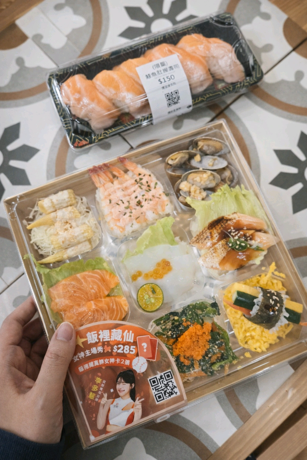 不知道吃什麼,就隨意點了爭鮮 gogo 這個看起來很精美的九宮格便當。 結果吃的時候內心一直在想: 怎麼會花快三百元買這個😅 難不成是因為李多慧才這麼貴嗎? 是說,真的會有人為了蒐集李多慧小卡而買這個便當嗎? 於是打開脆搜尋: 「我們是買卡,壽司只是吃順便的~」 ……喔,好吧😅 原來是我搞錯重點了。 / 九宮格裡面最好吃的是蒜味蛤蠣。 (意外 / 還好還有多買一盒鮭魚肚握壽司救場 (而且居然還限量