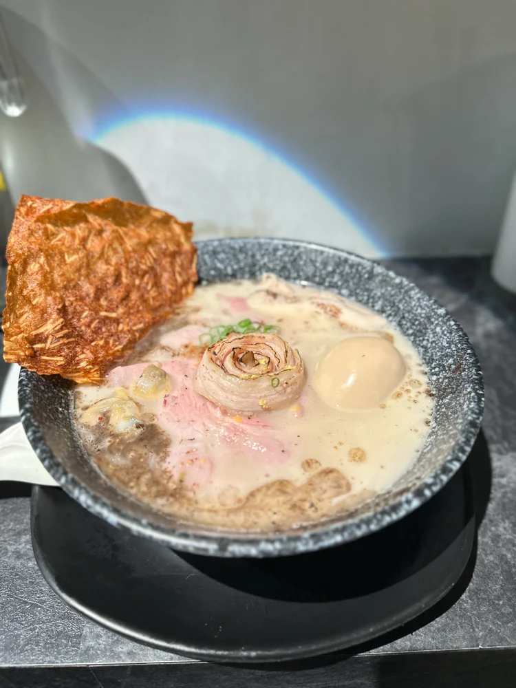 我的愛店!!!雖然這才第二次來吃哈哈哈 但真的每次排隊都排好久(⸝⸝o̴̶̷᷄ ·̭ o̴̶̷̥᷅⸝⸝) 【特級。牛肝菌豚骨魚貝拉麵】$360