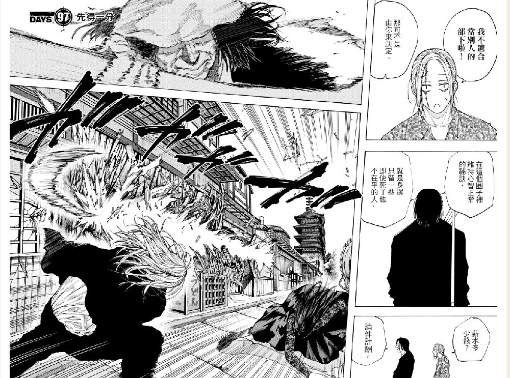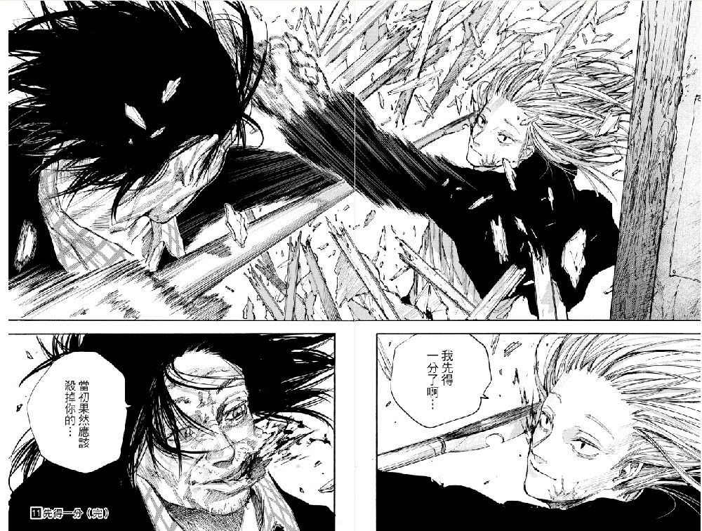 1、封面的神神迴真的是很帥。 2、第11集,久違地看到小BOSS對戰場面,酷愛攝影的金栗無厘頭的拿著攝影機,中二式地要拍攝喜愛的事物,佐藤老師最後愛的教育。 3、坂本對上金栗感覺也是64開,但各種跨頁場面,視角延伸真得是很有氣勢。 4、最期待的大概是神神迴要討伐自己以前的師傅四村,很難想像神神迴會敗北,但也不認為四村會這樣就買單,很期待後面的大對戰。 5、無聊猜測,四村之所以會殺了自己的妻子(以周的視角記憶),應該是有無法說的難言之隱,所以才會讓周忘記這段記憶,讓自己背負這個罪孽,(會是周才是殺害母親的人嗎?或是母親被控制要對周不利,因而四村提前出手呢?) 6、本集單行本特別收錄助手群在這部作品畫「背景」的專欄介紹,挺有趣的。