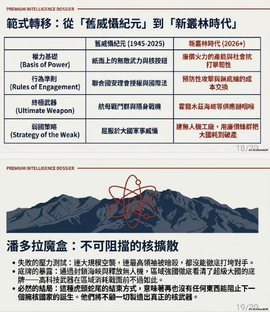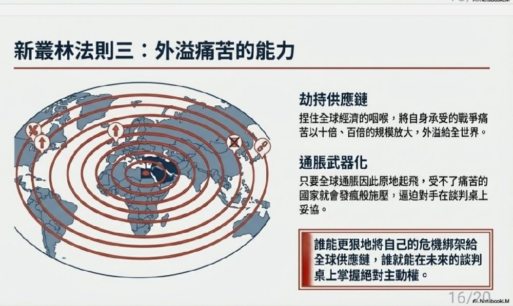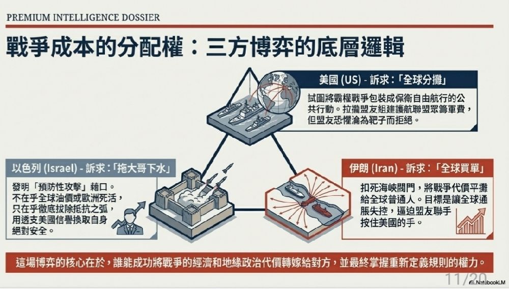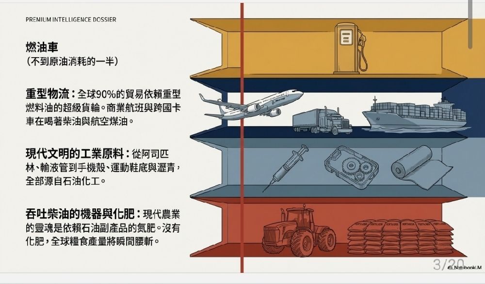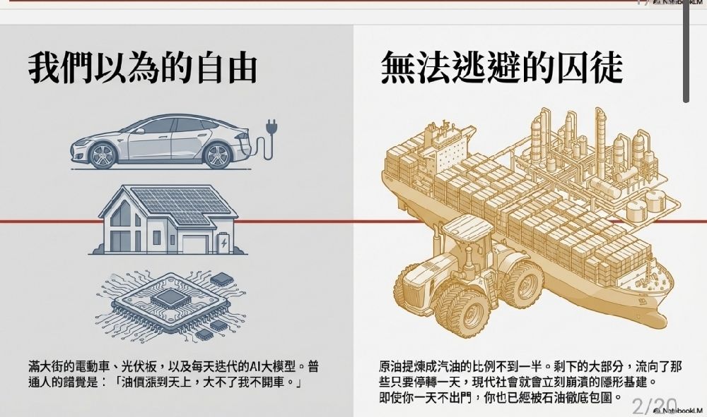 紀錄關於近期美伊戰爭跟未來的想法。 最初,我跟所有看好美軍(國)的人一樣。 看到前24小時內,伊朗最高領袖哈米尼被擊斃的新聞,我以為就像委內瑞拉一樣,是一場快速的斬首行動,再次民主解放了專制。 將深陷泥沼的伊朗人民解救出來。 那時的社群,多的是嘲笑中共的大外宣(一直宣傳美國不敢動伊朗),多的是各種歌頌川普的梗圖。 那時後的我想著,美軍真得是強大到像另一個次元的種族,對誰都是降維打擊。 可是,慢慢地,風向開始逐漸變。 因為伊朗並沒有因為最高領導人的消失而崩解,儘管接替的代理人,仍被美軍及以色列不斷地精準暗殺,但似乎這些死亡的代理人,在信仰的特殊加持下,成為神格化的存在? 而其實這些我也沒過多的在意,就某種程度上,我們知道世界上某些地方持續在戰爭、饑荒、種族衝突、人道危機;然而當這些事情離我們夠遠,他們就某種程度上只是某個新聞報導的一段文字或是影像。 但這次伊朗透過封鎖荷姆茲海峽,來牽制住全球的能源出口,更透過無差別的飛彈攻擊破壞週邊國家的設施來達到影響全世界的效果。 無獨有偶,剛好前陣子看過 #石油大王 影集,我依稀記得 主角 給高學歷的律師狠狠上了一課,現代石油是如何牽動所有的生活運轉 。 截至目前紀錄的當日為止,中油吸收了60-70%的漲幅(但其實也是納稅人的錢),讓油價僅漲幅15%,但相信很多人已經能感受到,許多物資上漲,小吃店的塑膠袋開始貼出不再免費的公告,做生意的朋友們,跟盤商叫貨越來越難,鋪馬路的柏油瀝青限縮供應。 體感可見的,生活周遭所見的各項事務,開始會更有感地感受到這個戰爭的影響。 如果要我說,我學到了什麼。 那大概是,越專制越不在乎代價的那方獲勝的機率越大,伊朗可以完全不在乎國內一般人民的感受,不顧周遭國家的撻伐反對,不在乎犧牲多少的人。 縱使美軍、以色列在軍事上基本就是完全9:1壓倒性壓制,但無損伊朗繼續硬撐著。 只要能夠拖所有人下水,爛命一條奉陪到底,不斷用著極端代價來兌換成效。 這是民主國家很難想像的,因為在民主國家,人民才是主人(應該啦),民眾的聲量是很大的,甚至打著正義的大旗,勢必要遵守相關的規則。 但在專制國家,則完全相反。 在影片中的作者說著,全球都在看這場戰爭的走向,特別是那些獨裁國家,是的,我就是在說中共、北韓及俄羅斯。 如果連伊朗都可能最後藉著控制海峽來讓全世界也成為他們的人質,那中共呢? 要獨裁可以更獨裁,要軍力能列全世界第二,重點是,拼能源自主、工業產量、奴性996這些都會是未來戰爭下的最大優勢。 就像《三體》中獨有的黑暗森林法則, 現在世界也要準備走向另一個季元,一個恐怖平衡要被打破的紀元。 1、 #石油與現代生活的深度綁定: 絕大多數人誤以為新能源時代能擺脫石油,但石油不僅是燃料,更是現代工業與文明的根基。除了不到一半的原油被製成汽油外,其餘支撐著全球重型物流(卡車、飛機、輪船)、石油化工(塑料、橡膠、合成纖維、醫藥中間體)以及現代農業的靈魂——化肥。 一旦霍爾木茲海峽封鎖,將引發從物流到飯碗的全面物價爆炸。 2、 #天然氣 是數位文明的「生命線」: 天然氣(LNG)在當前能源轉型期是電力供應的中流砥柱,支撐著德、法、日、韓等國的製造業。 更重要的是,現代 AI 大模型與數位文明極度依賴高耗能的伺服器,若缺乏中東天然氣發電,電網崩潰將等同於直接拔掉數位世界的電源。 3、 #傳統大國高科技威懾的破產: 美國與以色列的高科技武器(如核動力航母、薩德防禦系統)在面對伊朗的「叫花子戰術」時顯得束手無策 。當幾百架造價僅 2 萬美金的自殺式無人機攻擊數百萬美金一發的防空導彈時,極度不對稱的「成本交換比」讓高科技威懾徹底失效。 4、 #戰爭成本分配權的戰略博弈: 這場危機已演變成一場搶奪「戰爭成本分配權」的博弈:美國想讓全球盟友共同分擔護航成本;伊朗則利用霍爾木茲海峽作為籌碼,將戰爭痛苦轉化為全球通脹,迫使其他國家向美國施壓。 以色列則試圖透過引發危機將美國拖下水,以徹底解決自身的生存威脅。 5、 #未來國家實力的三項新指標: 作者宣告「舊威懾紀元」的結束,未來的戰爭與國家生存將取決於: (1)工業產能: 能否像灌香腸一樣量產廉價武器(如無人機)。 (2)體系韌性: 在遭受攻擊、斷網斷電的情況下,基層組織與基礎設施恢復運轉的能力。 (3)外溢痛苦的能力: 誰能更狠地將自身危機綁架給全球供應鏈,誰就能在談判桌上掌握主動權。