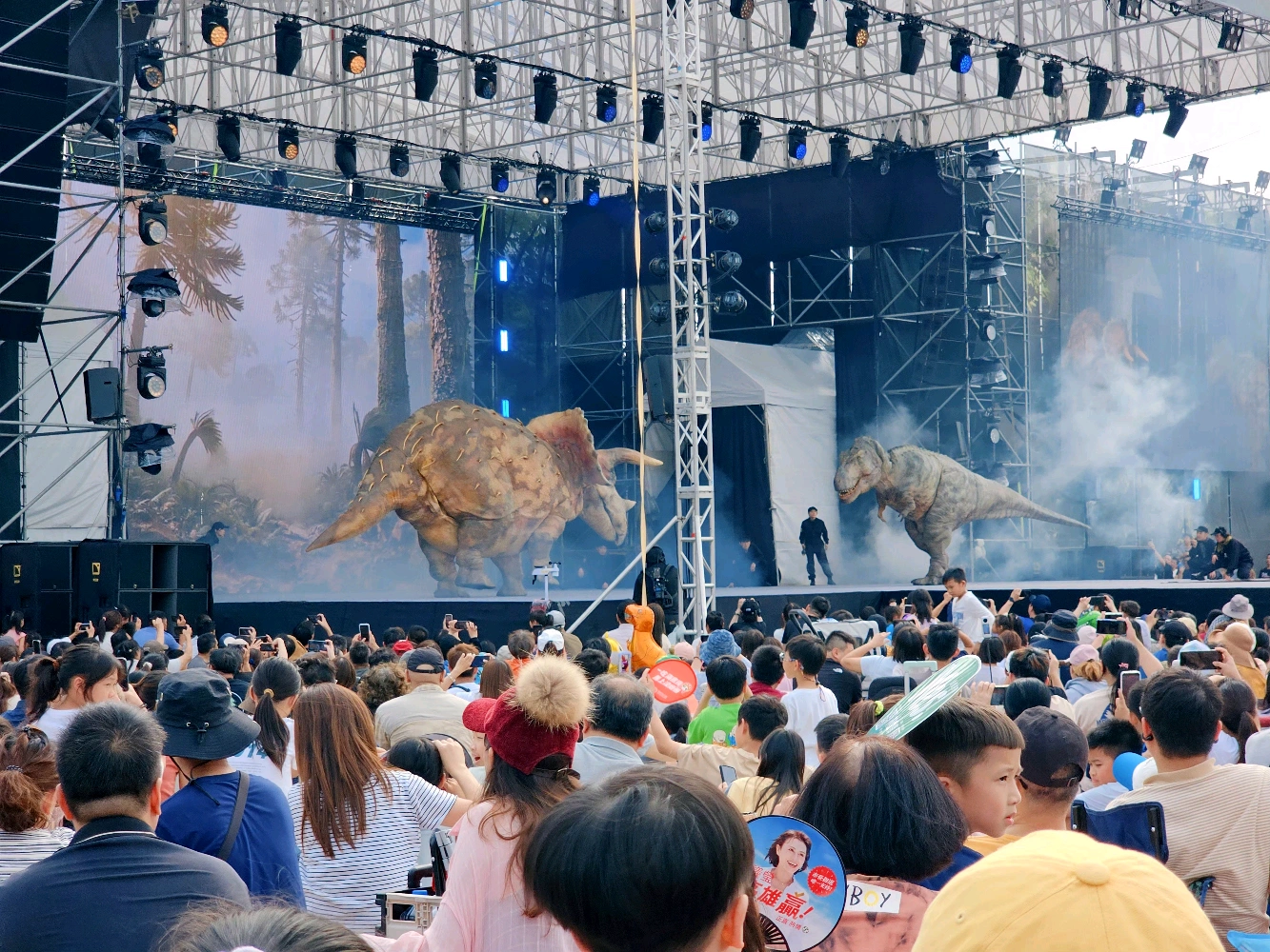 然後你會不得不佩服那滿山滿谷的觀眾.... 雖然你滿滿的無奈感,但看到這句我笑了😆 那些恐龍真的看起來好真喔!小朋友應該還是樂瘋了吧